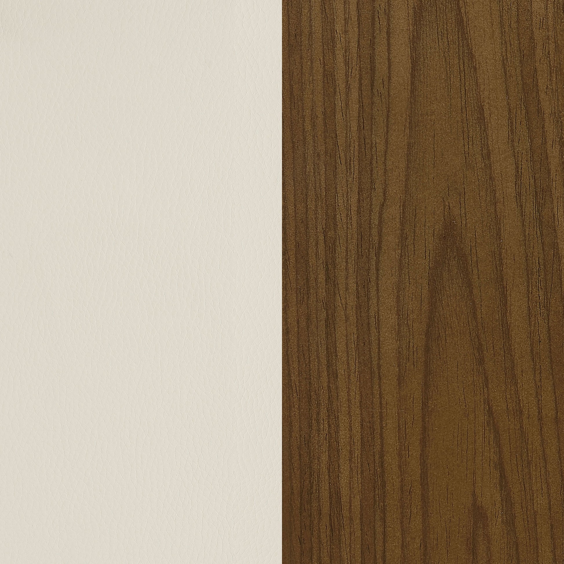 • Enjoy a lush palette with ecru leatherette upholstery and walnut and chrome trim