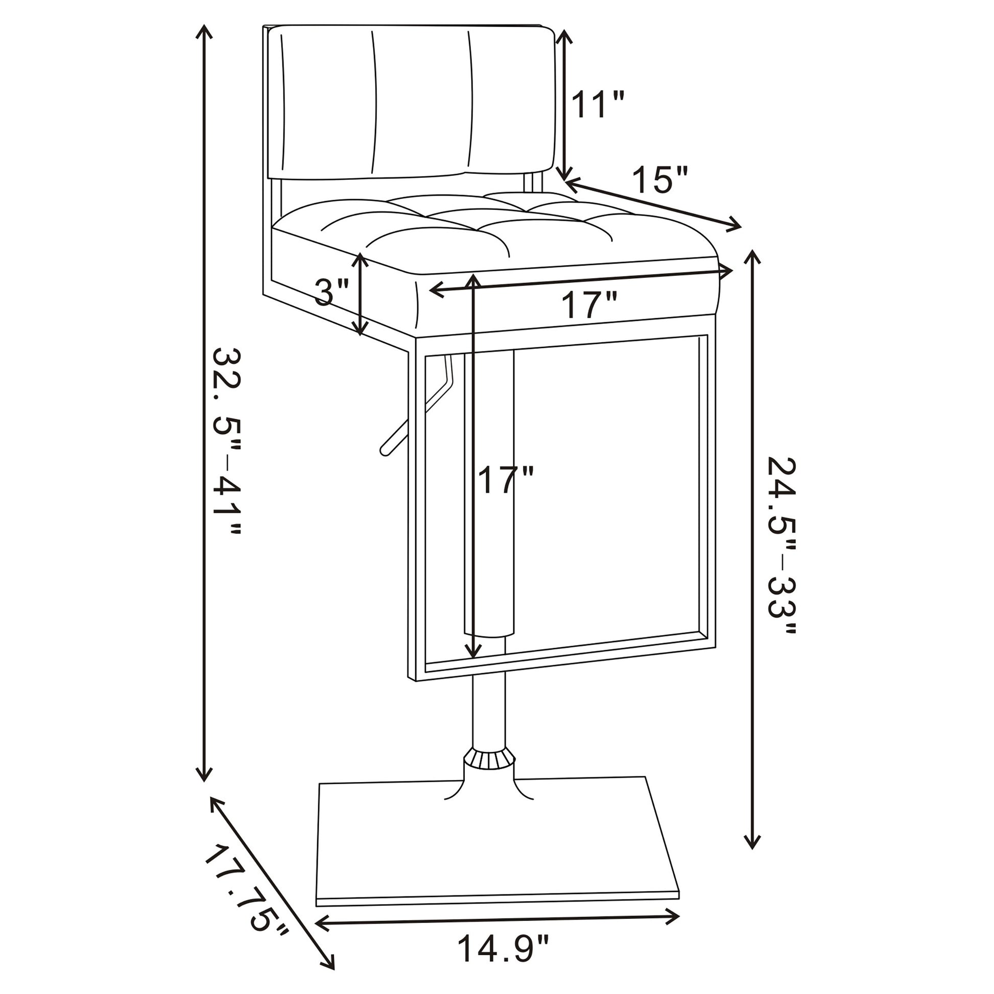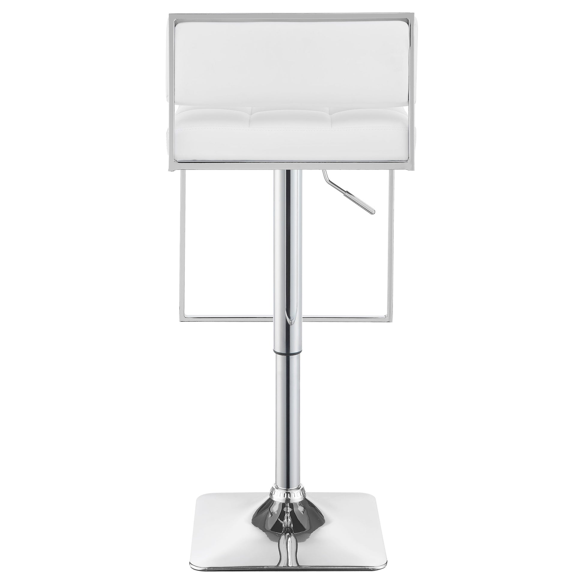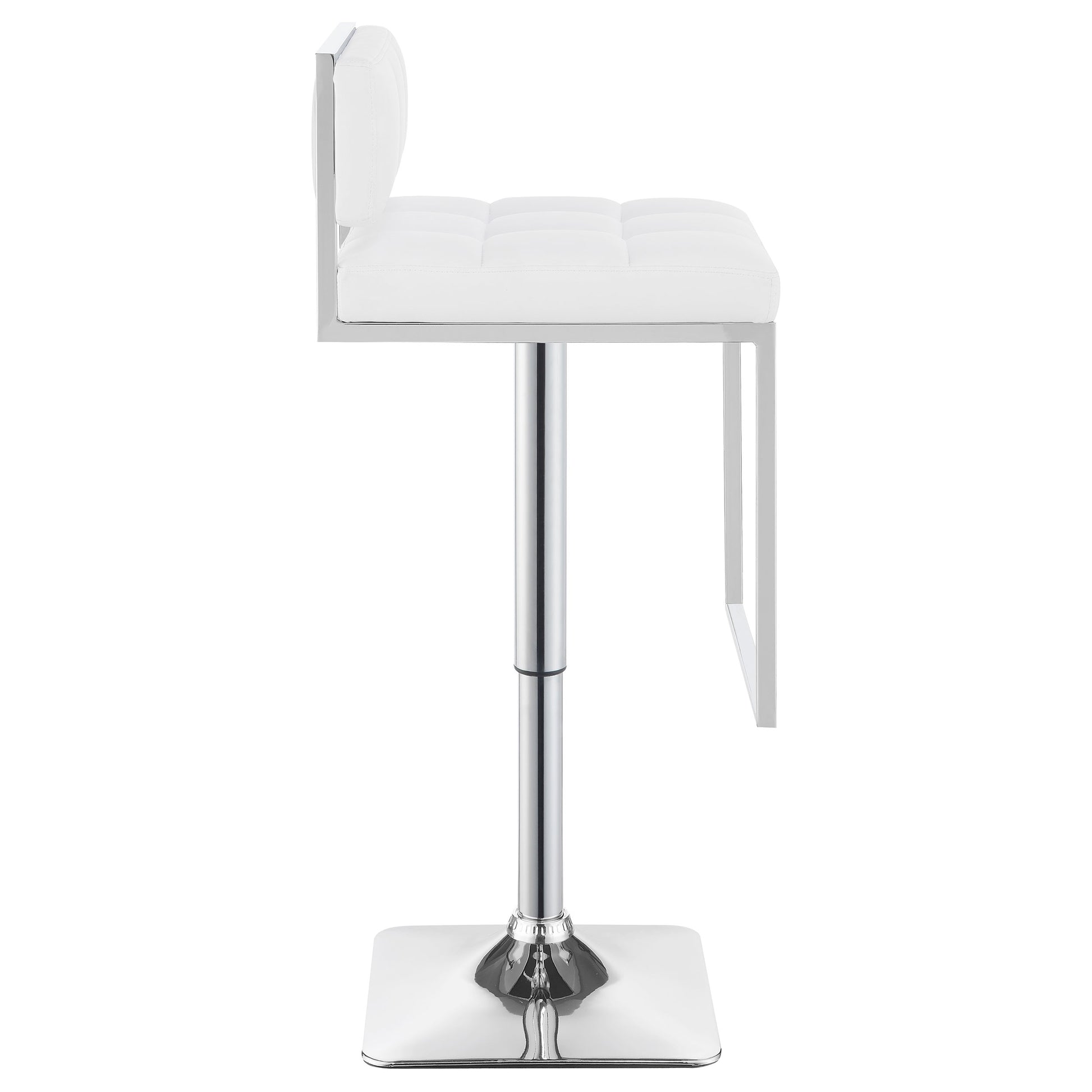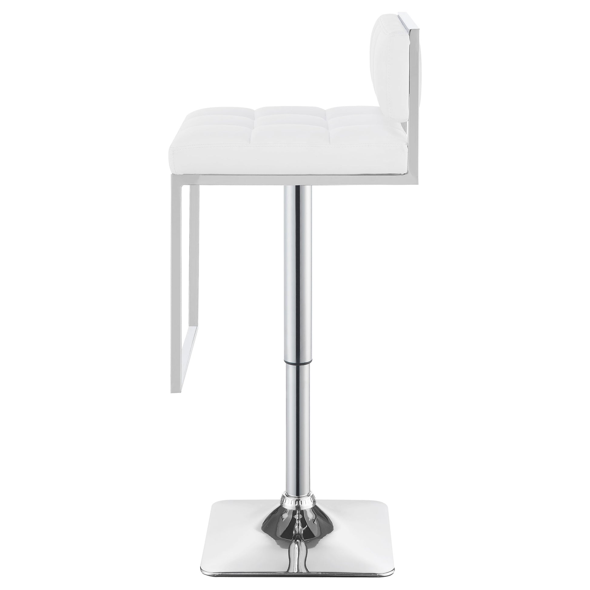 Refresh a modern space with a dynamic accent. A slender silhouette makes this bar stool perfect for a redesigned contemporary kitchen or dining space. Sleek white upholstery with channeling covers linear designed cushions. Chrome finish metal forms a base and cool U-shaped footrest. Adjustable seat heights conform to a coordinating pub table or counter.