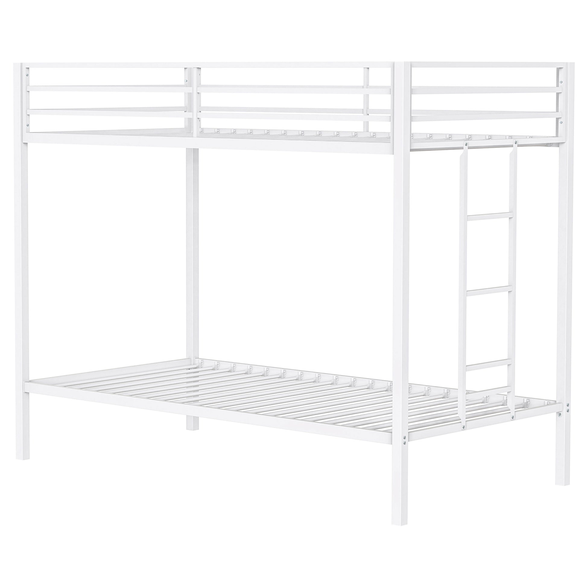 Alevera Metal Twin Over Twin Bunk Bed with Ladder White