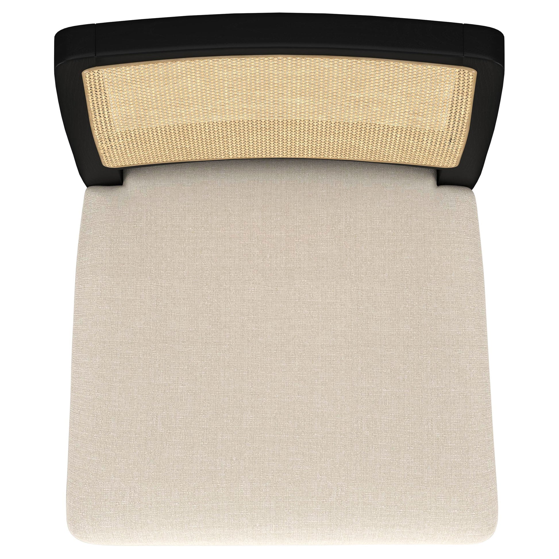• Handwoven rattan backrests offer organic texture against the clean black wood chair frames