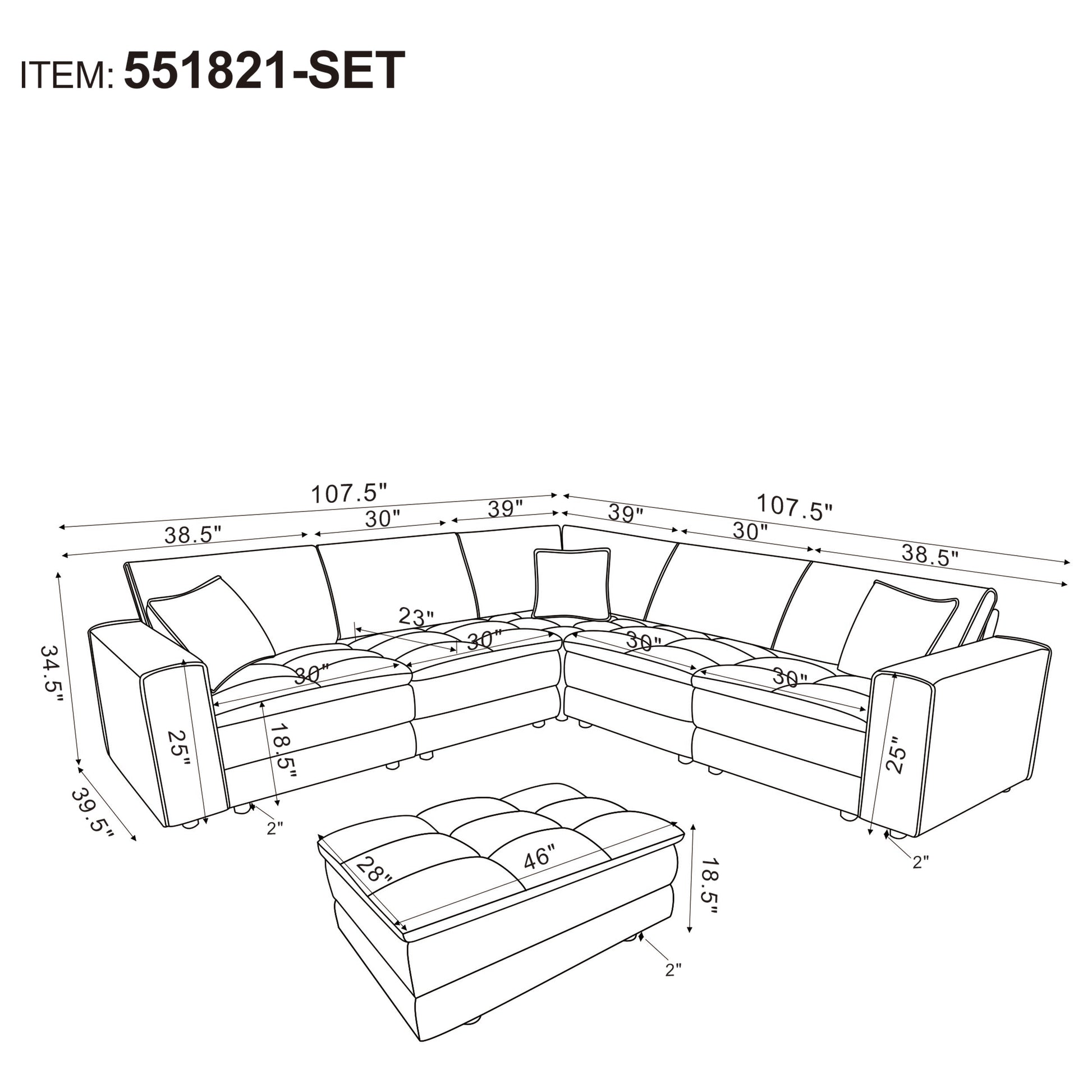 This retro-inspired modular sectional brings a blend of comfort and contemporary style to your living space. Featuring soft blue corduroy upholstery and a sophisticated grid-tufted design, it delivers both elegance and coziness. The fully encased solid and engineered wood frame ensures stability for heavy use, while sinuous spring seating and pocket coil springs provide exceptional support and durability. A matching tufted ottoman adds versatility, offering extra seating or leg support for a complete lounging experience.