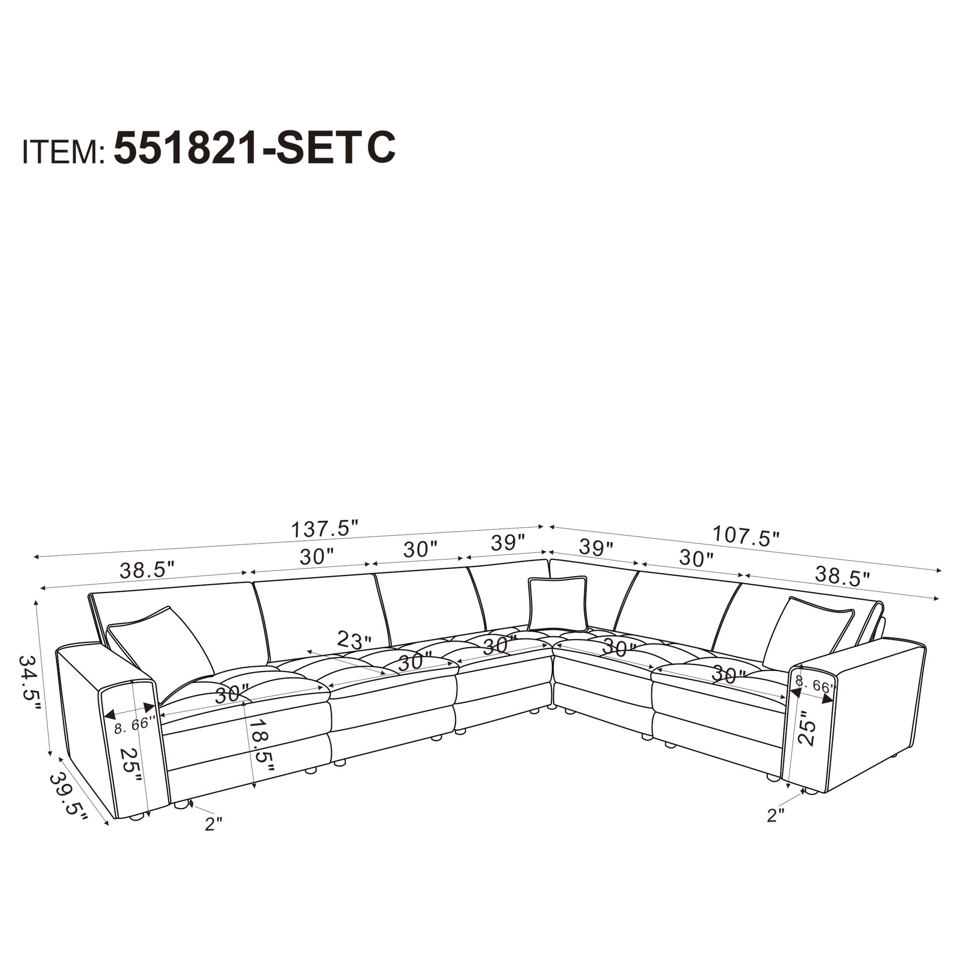 This retro-inspired modular sectional brings a blend of comfort and contemporary style to your living space. Featuring soft blue corduroy upholstery and a sophisticated grid-tufted design, it delivers both elegance and coziness. The fully encased solid and engineered wood frame ensures stability for heavy use, while sinuous spring seating and pocket coil springs provide exceptional support and durability.