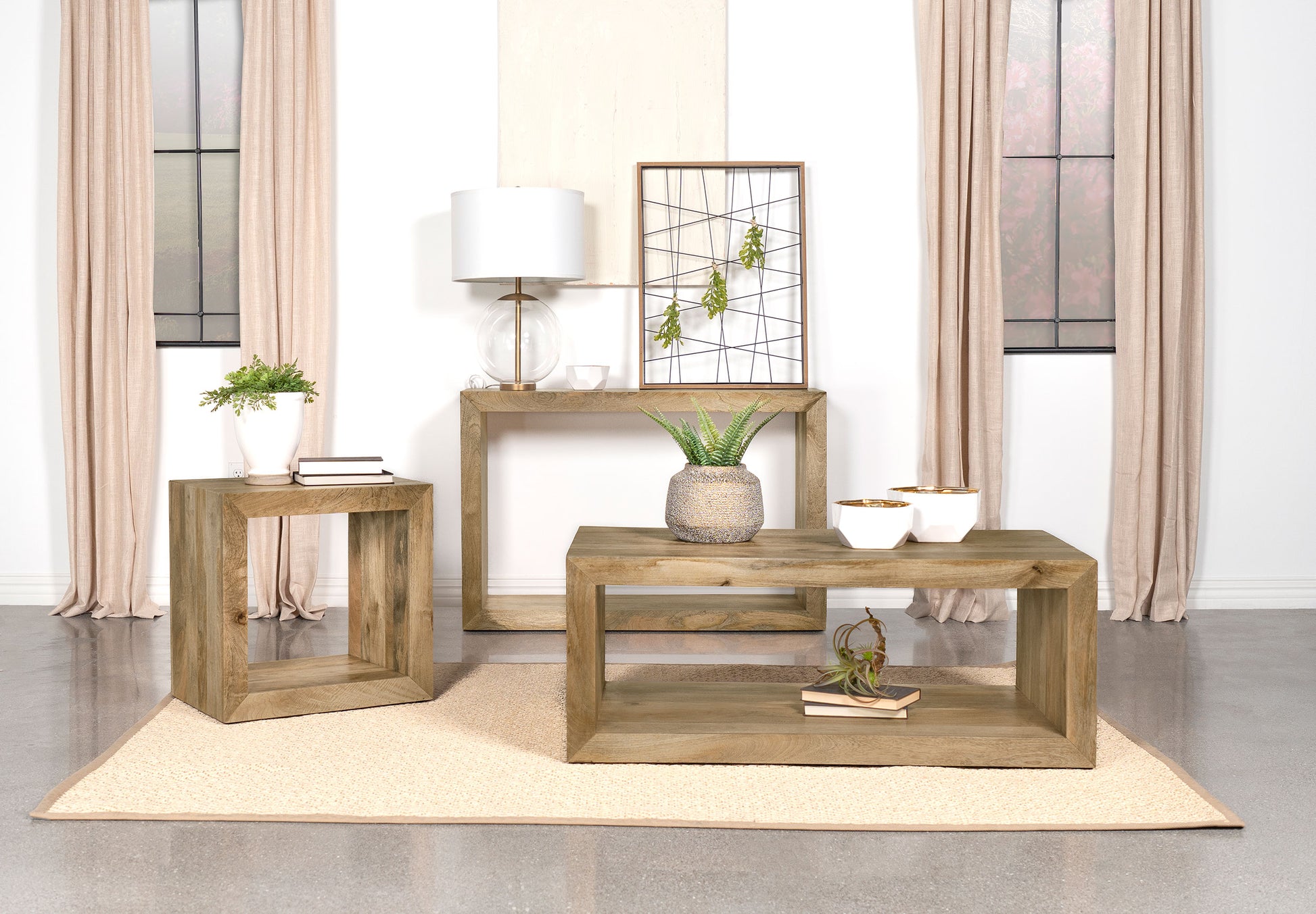 Embracing the very soul of natural design principles, enhance your living room with this end table crafted from solid mango wood. Featuring a natural finish, it showcases the wood's unique grain patterns for a touch of organic charm. The open cube design adds modern flair and offers versatile storage or display options. This side table's durable construction ensures everyday functionality, making it an ideal addition to contemporary and rustic interiors alike.