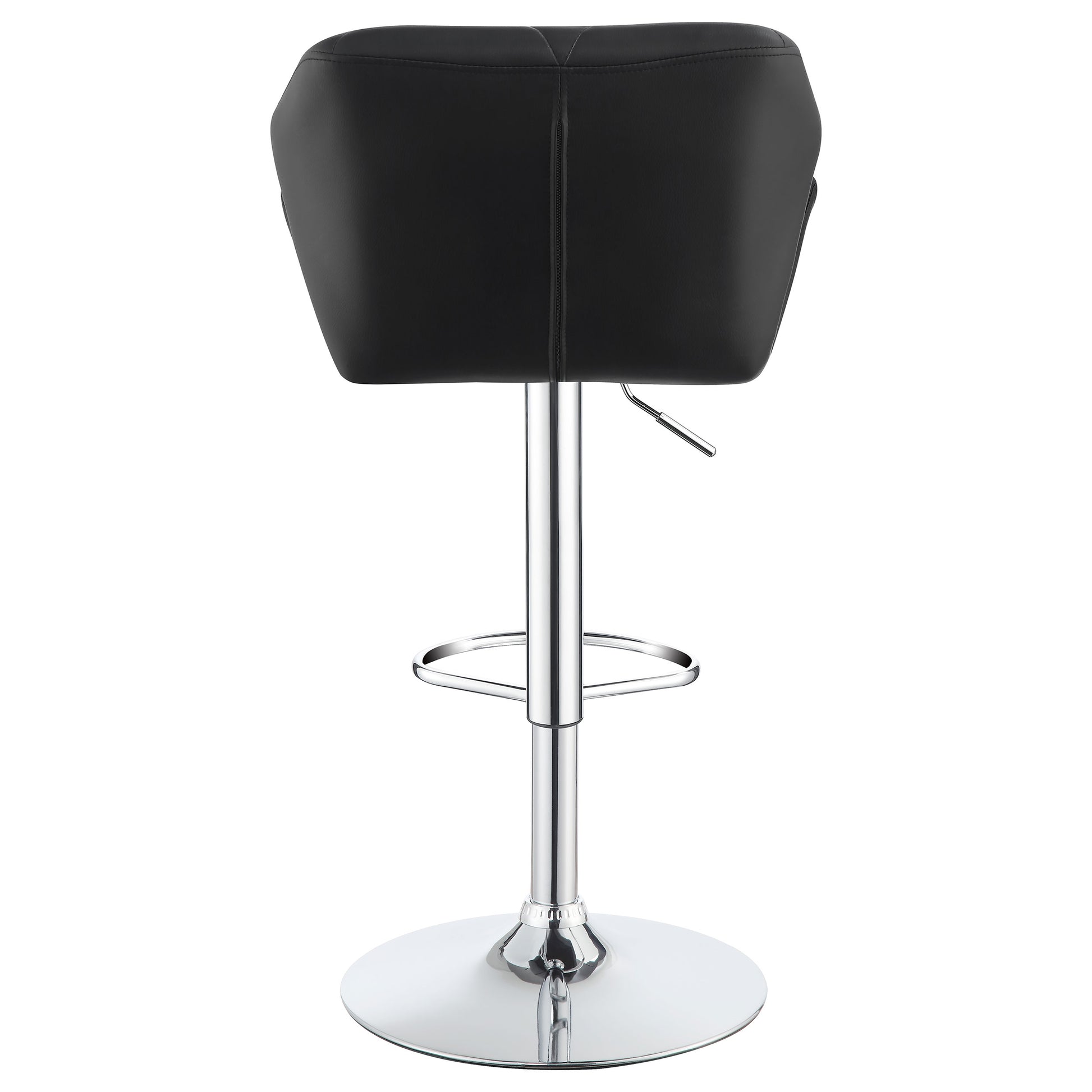 Invite cozy comfort and subdued glamour into your home with this modern, adjustable bar stool. Luxe, leather-like upholstery is adorned with stylish tufting, giving it a pleasingly updated look. Its metal base boasts graceful lines and a shining chrome finish to balance out its elegant design. A simple, round foot pedestal provides a comfortable place to rest your feet. Easily adjustable to accommodate tables, bars, and counters of all heights, this stool is a versatile option for any dining area.