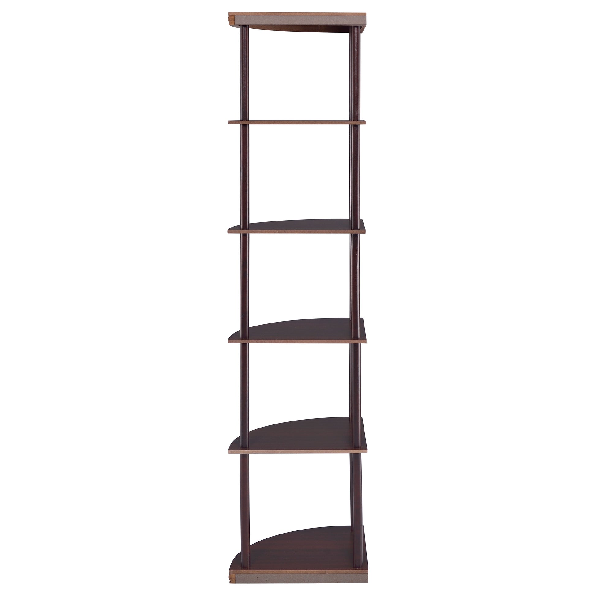 Classy and compact, this four-tier bookcase is a convenient option for a small space. It's designed to fit easily into a corner for space-saving convenience. Made from rubberwood and other high-quality materials, it provides a safe, sturdy spot to display books and keepsakes. A warm, rich cappuccino finish adds elegance and depth. Whether placed in a bedroom, den, or office, this bookcase is sure to enhance any room.