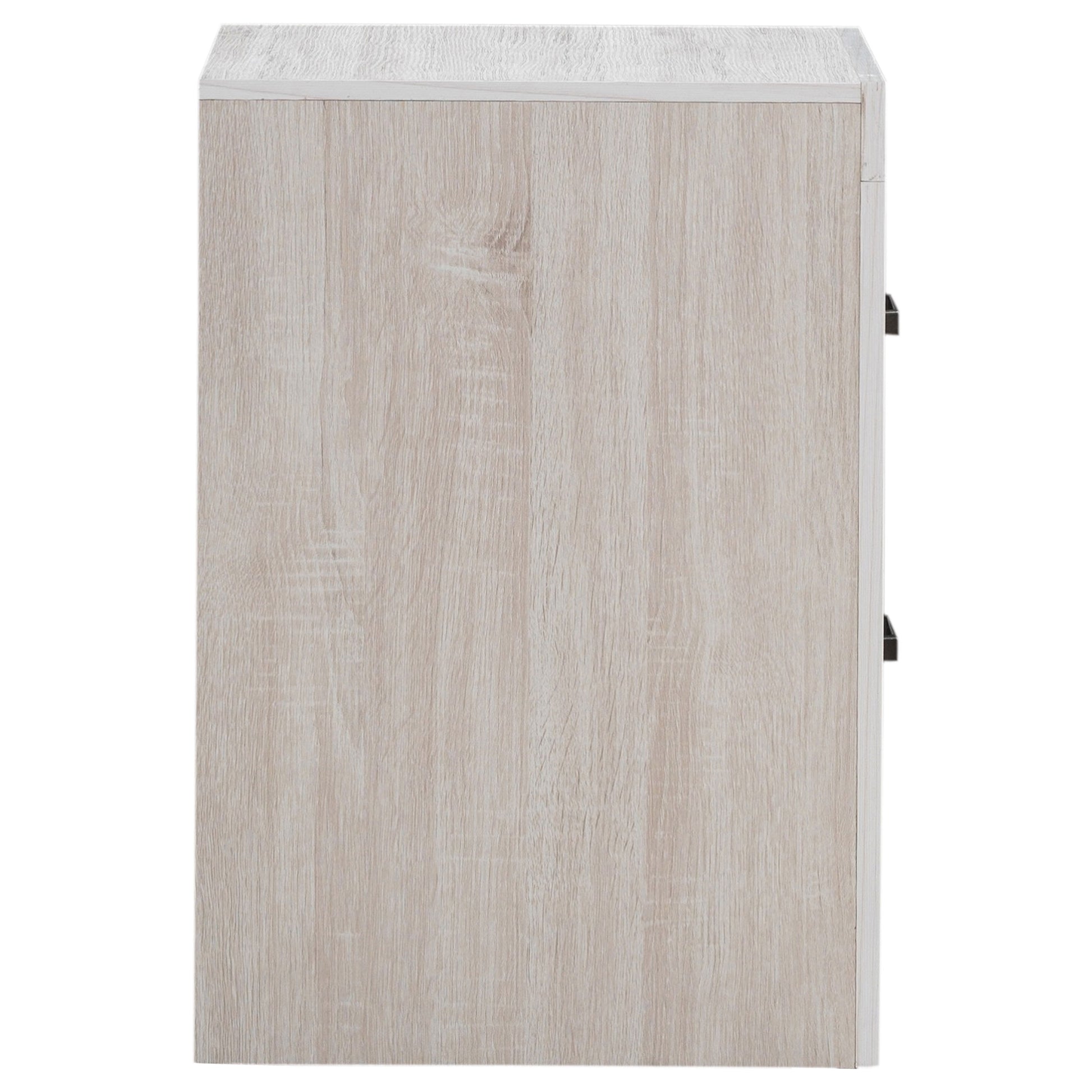 This two-drawer nightstand brings modern style and practical storage to the bedside. Its clean-lined frame complements contemporary spaces, while two spacious drawers provide room for nighttime essentials. Dark bronze handles contrast beautifully against the engineered wood construction and durable laminate veneer. Designed for everyday use, this nightstand offers both style and function in a compact footprint.