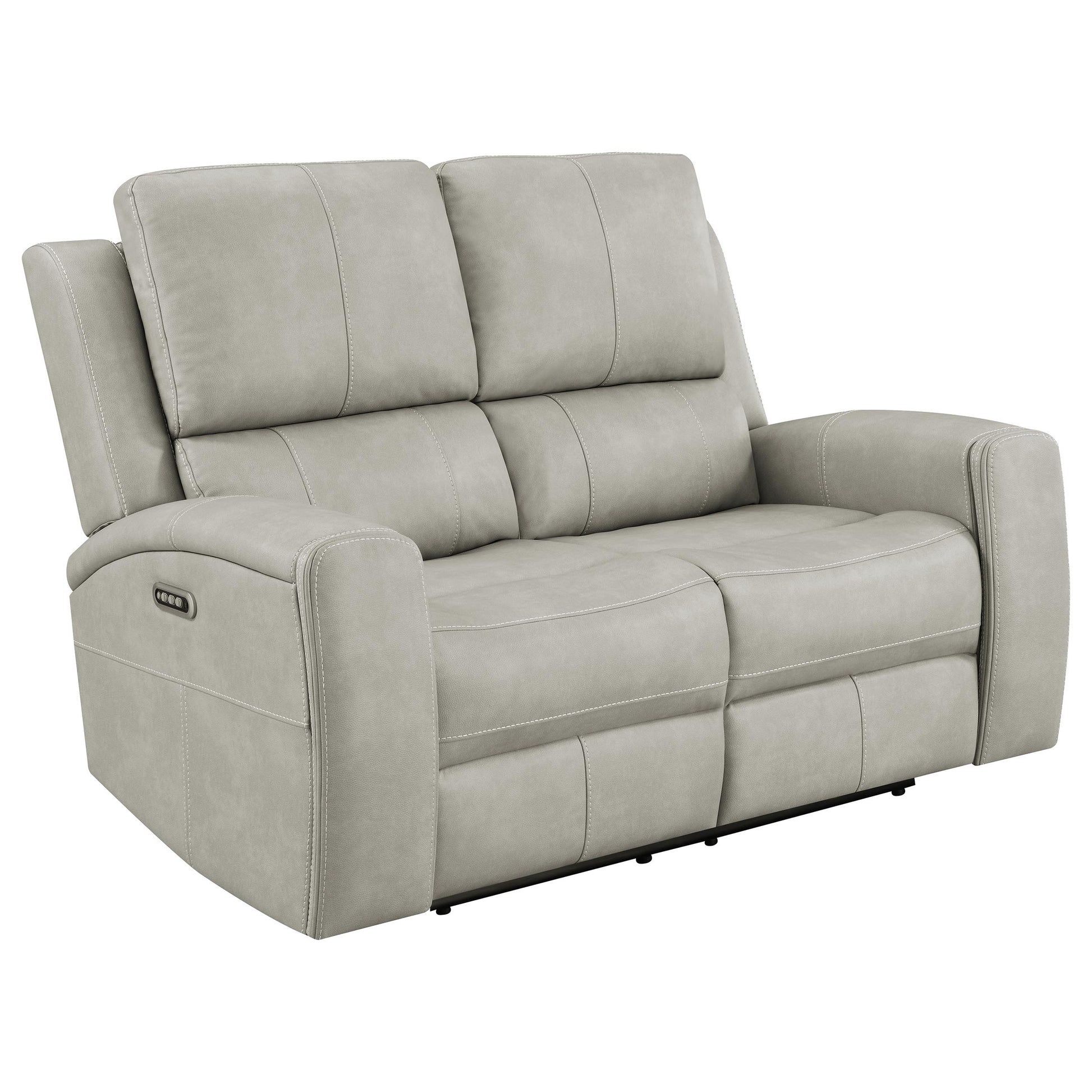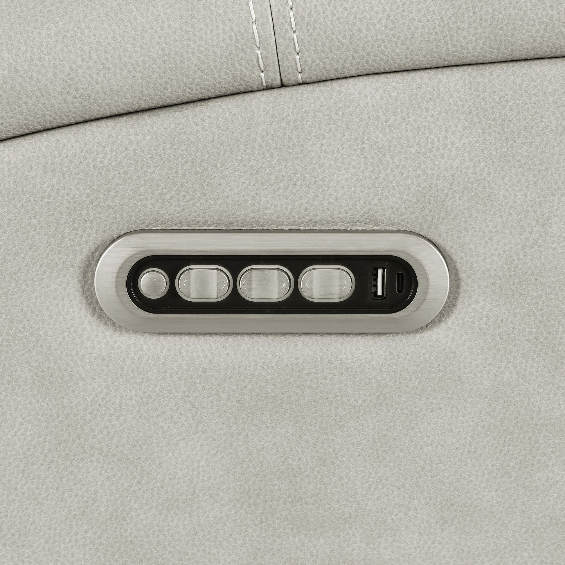 Designed to embrace your every mood, this zero gravity triple power reclining loveseat transforms quiet evenings into indulgent escapes. Rich leatherette envelopes sculpted cushions, tailored with striking contrast stitching for a refined, modern aesthetic. Effortlessly adjust the power recline, headrest, and lumbar support with an integrated control panel, complete with dual USB ports to keep your devices powered and close. Thoughtfully placed armrest cup holders elevate your lounging experience, while a rear AC access port with emergency battery option ensures seamless operation, no matter the moment.