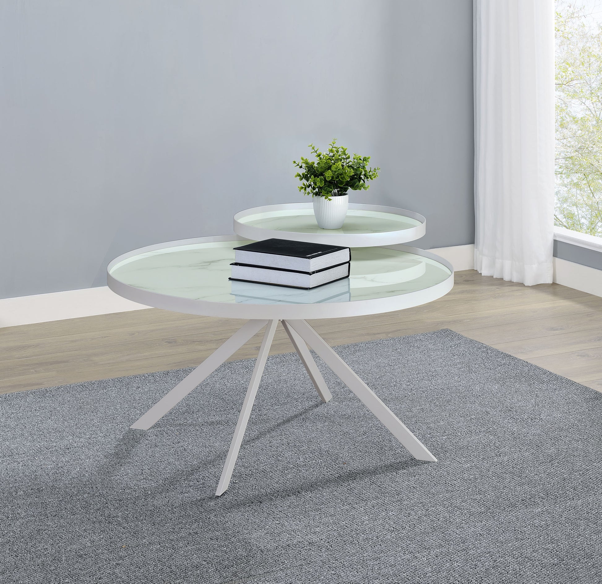 Briggs Round Marble Printed Glass Top Coffee Table White