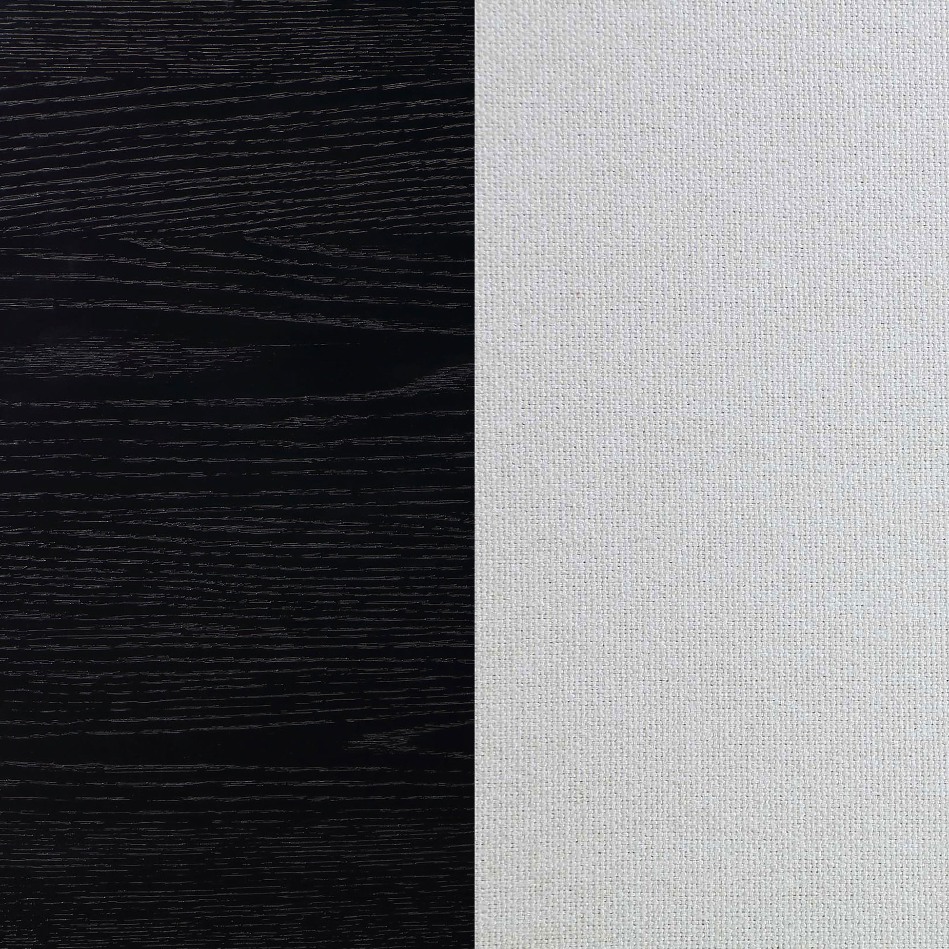 • Crisp contrast appears in a bordered look with black wood finish framing and soft ivory upholstery
