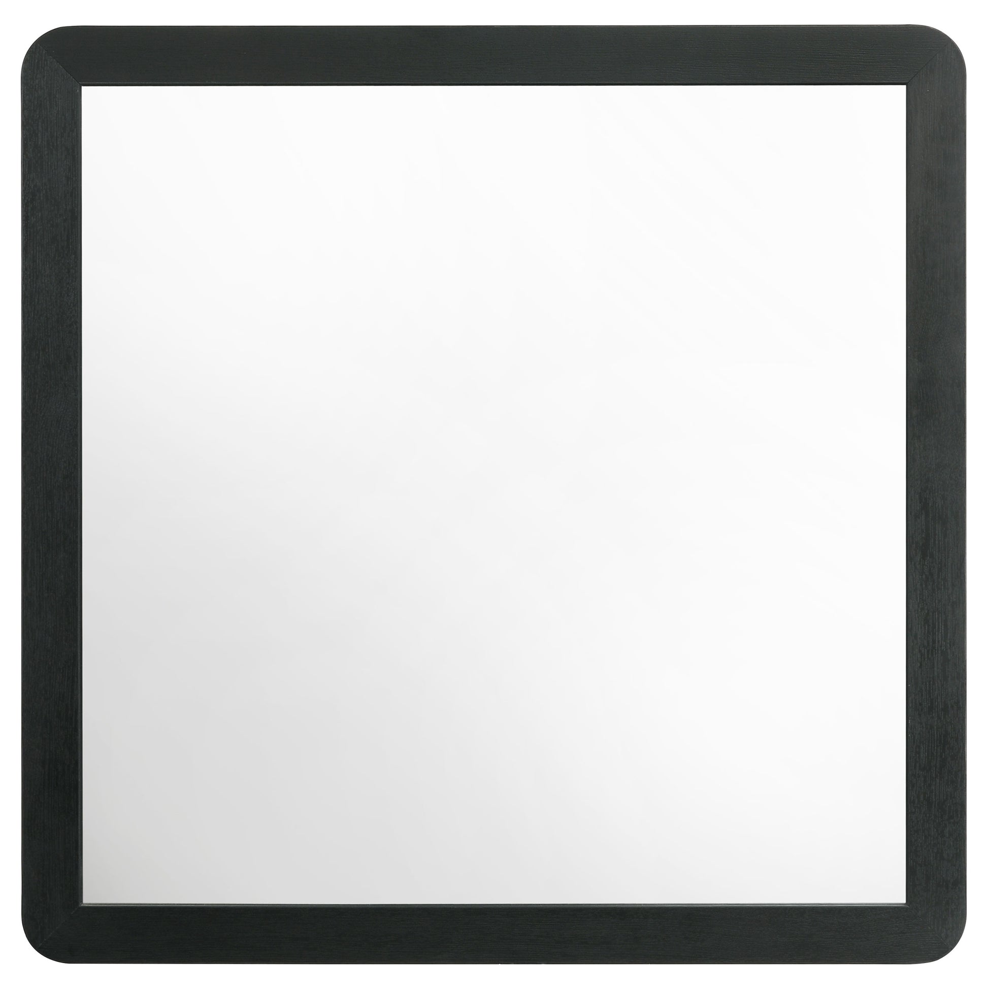 Instill a refined final touch with a modern framed dresser mirror. Its contemporary style is enhanced with a black finish over melamine framing, resisting wear and tear for a chic look that lasts. It features rounded corners on its frame, creating an open, inviting touch of elegance. The mirror boasts flat glass for a fresh, refined presentation. It mounts directly to your dresser, creating airy reflectivity perfect for grooming and beauty rituals.