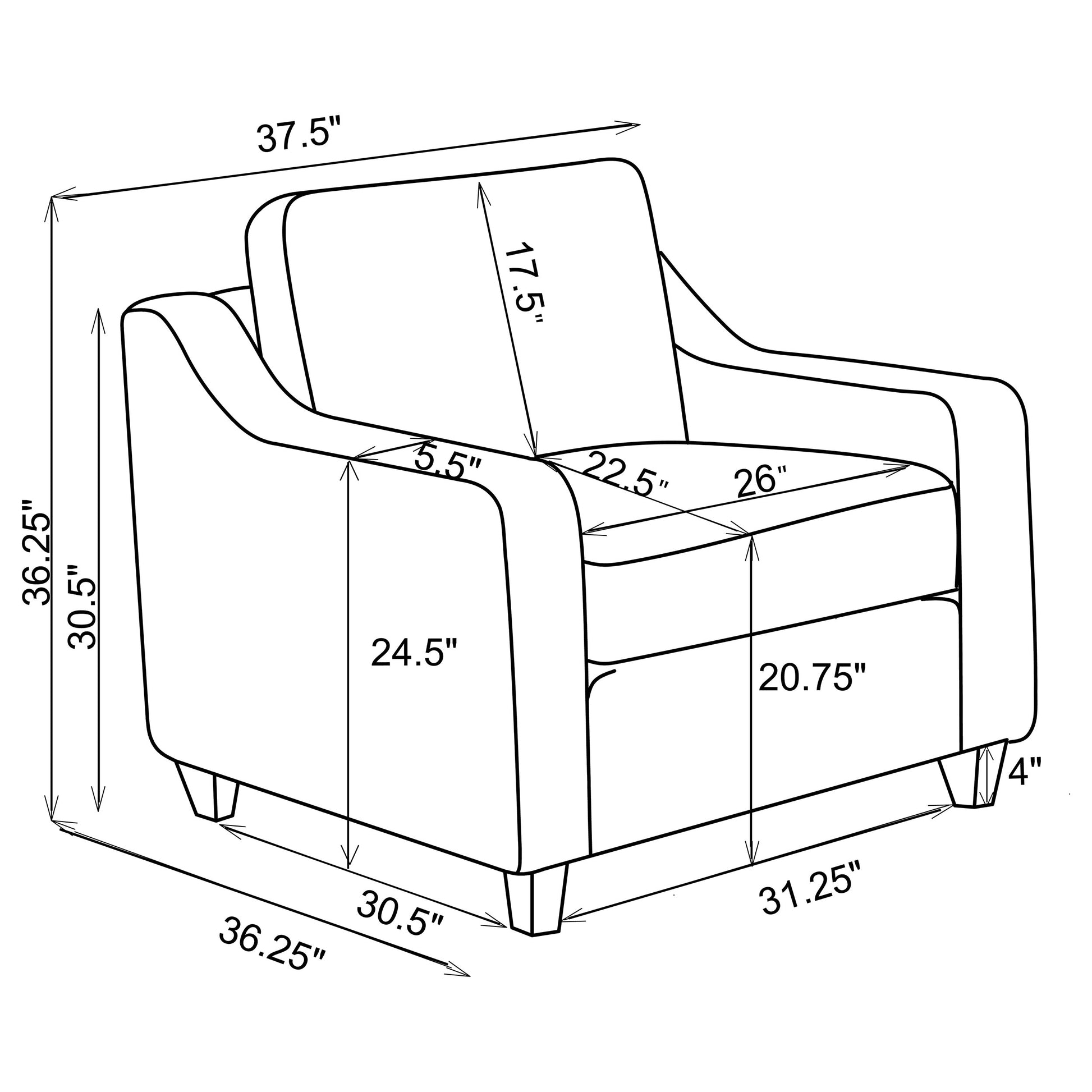 Wrapped in a cheerful, beige woven chenille upholstery, this seating set exudes a look of sophistication. Sloped track arms add elegant lines while tapered dark brown legs add a striking contrast. Understated yet regal, this transitional seating set works inside farmhouse and contemporary style homes effortlessly. Dense and plush boxed seat and back cushions feature classic welt details, as coral and copper tone accent pillows lend a boho-like tough. Add this upholstered furniture set into a space for a subtle chic aesthetic.