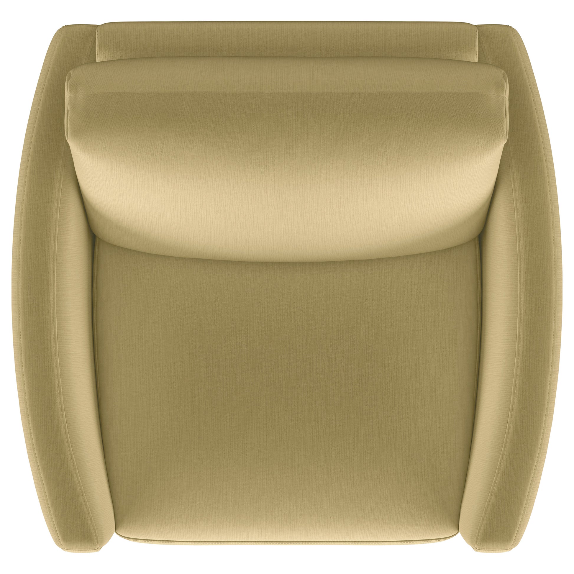 Indulge in opulent comfort with this textured velvet chair. Its reversible feather blend seat and back cushions, complemented by curved arms and gold stainless steel legs. Smooth upholstery and lustrous details blend simplicity with timeless splendor, making this piece a perfect focal point for refined interiors. With its inviting profile and graceful presence, it elevates both style and relaxation.