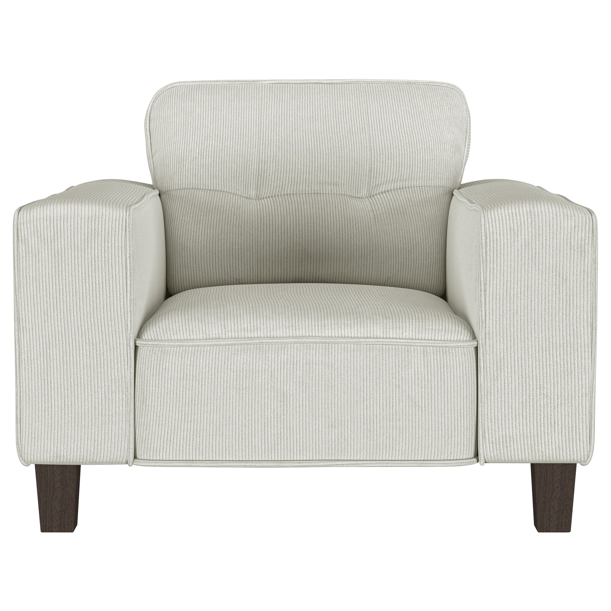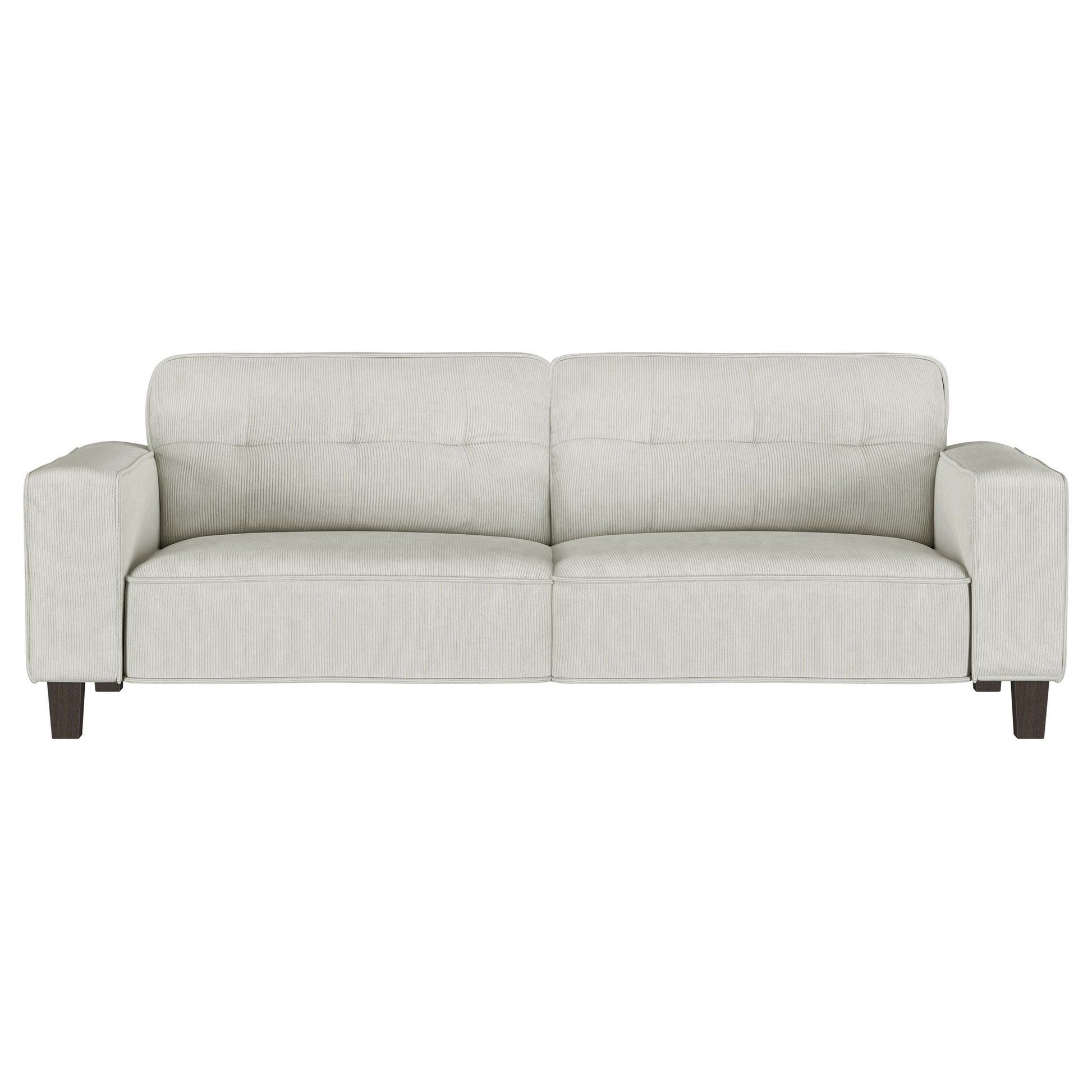Tufted accents create the perfect dose of mid-century flair for a three-piece modern sofa set. Offering chic, comfortable seating in your living room, the set features soft, neutral upholstery over foam cushions, providing excellent comfort. A stylish silhouette is established with a wide track arms and tapered legs that provide lift for an airy touch. Seating features sinuous spring decking for wonderfully supportive relaxation. Place the sofa, loveseat and armchair together or split them amongst seating areas for a cohesive look and feel.