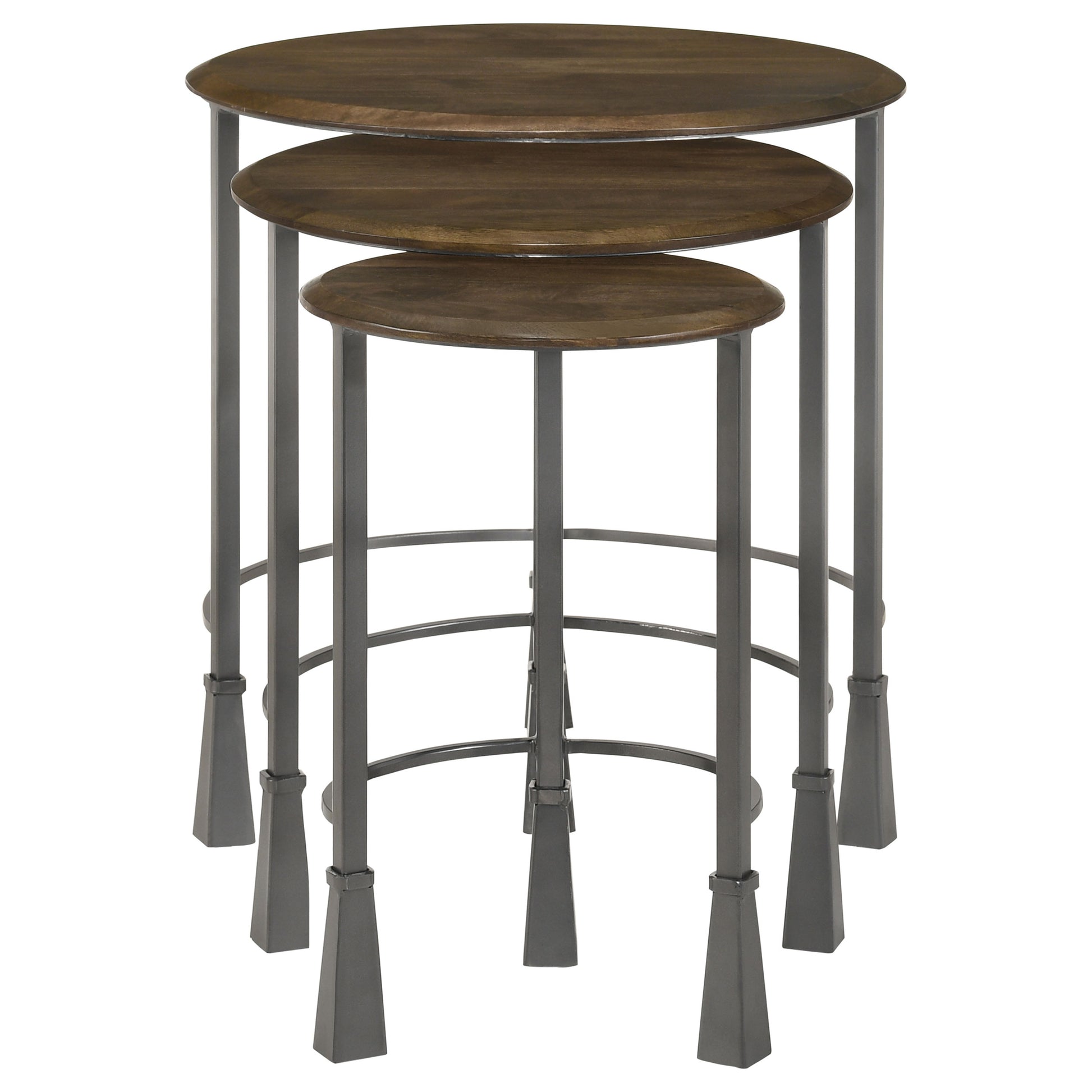 Deja 3-piece Round Nesting Table Set Natural and Gunmetal