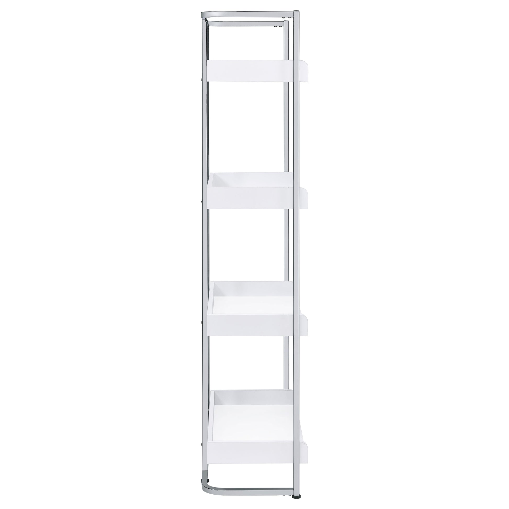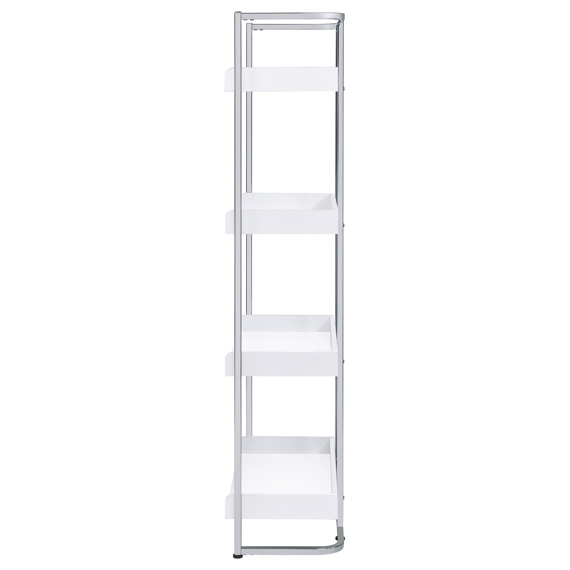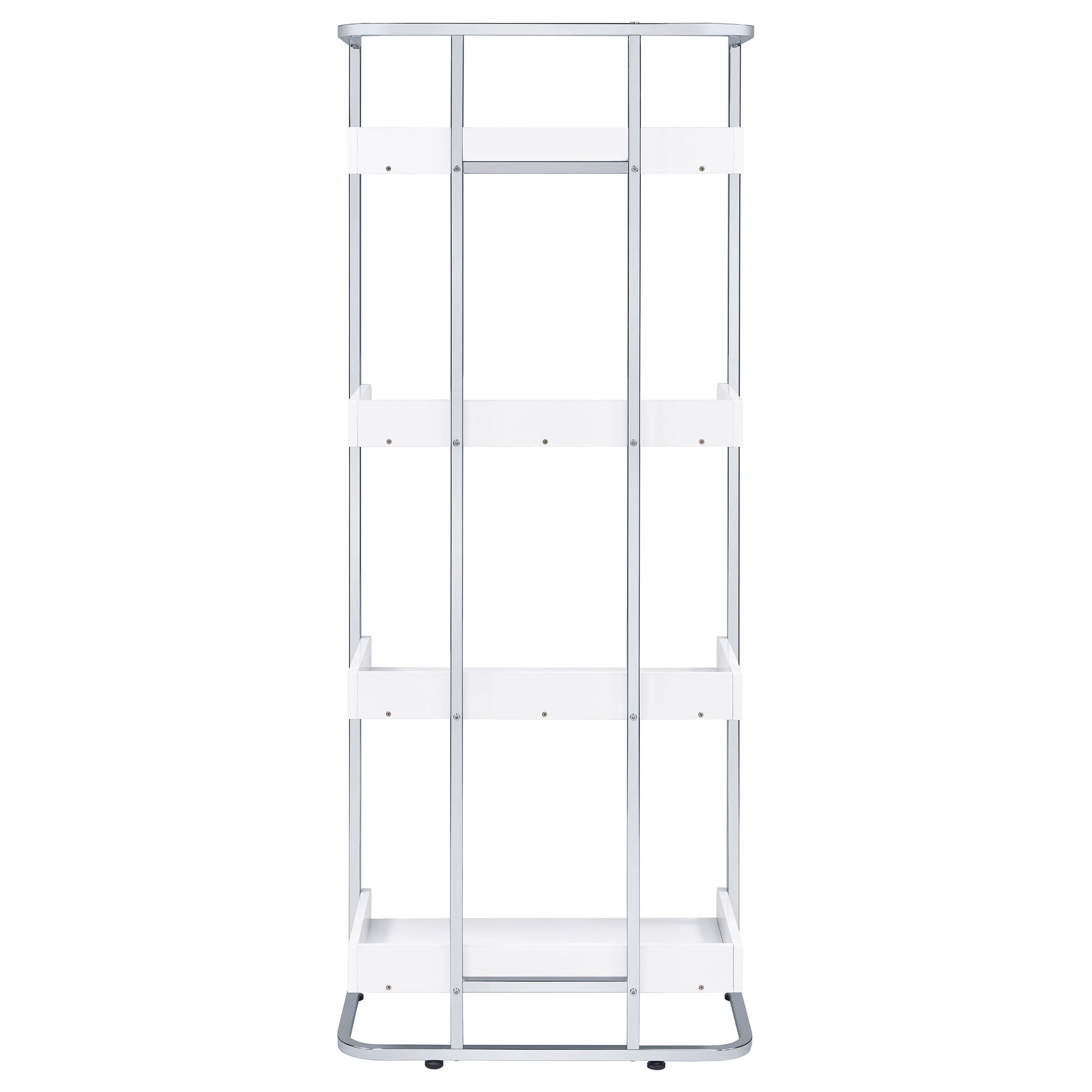 Ember 68-inch 4-shelf Bookshelf White High Gloss and Chrome