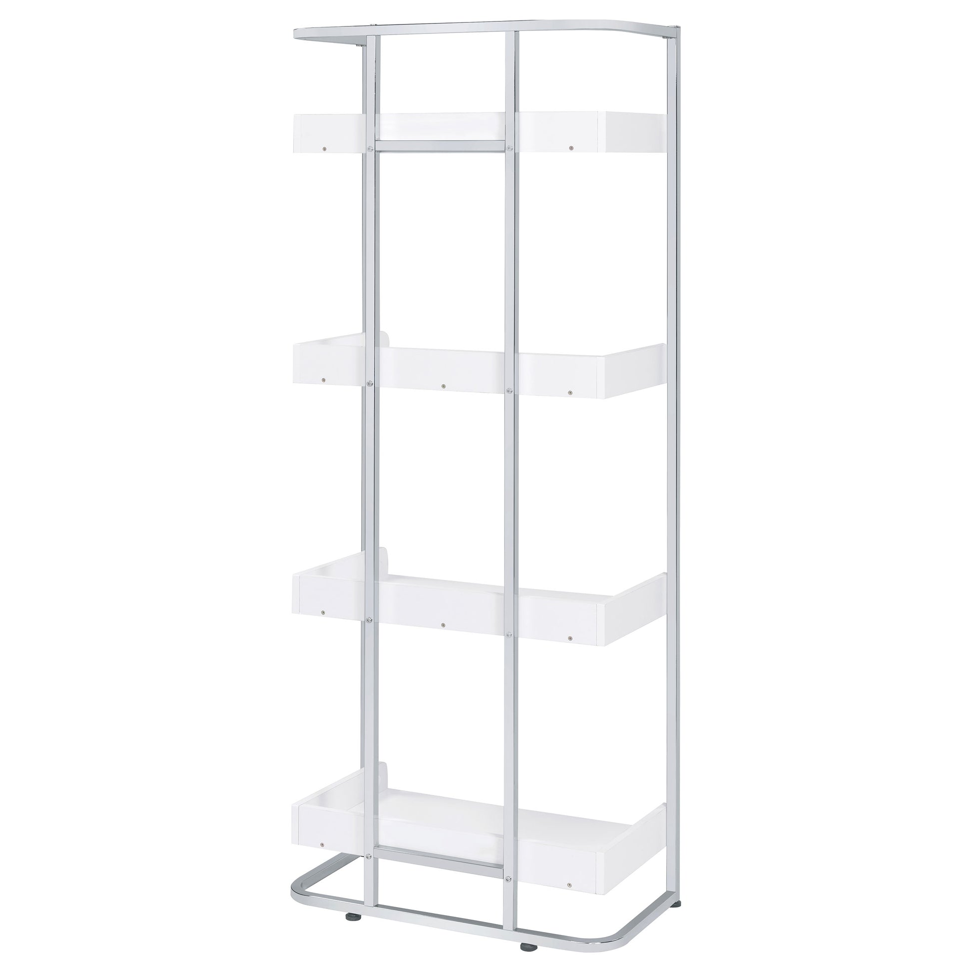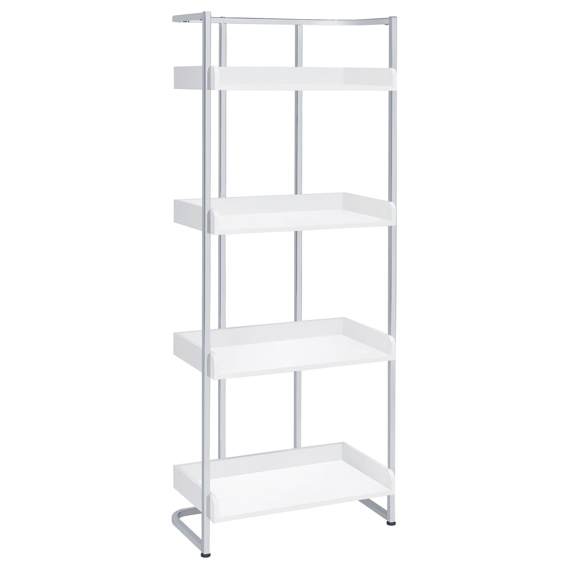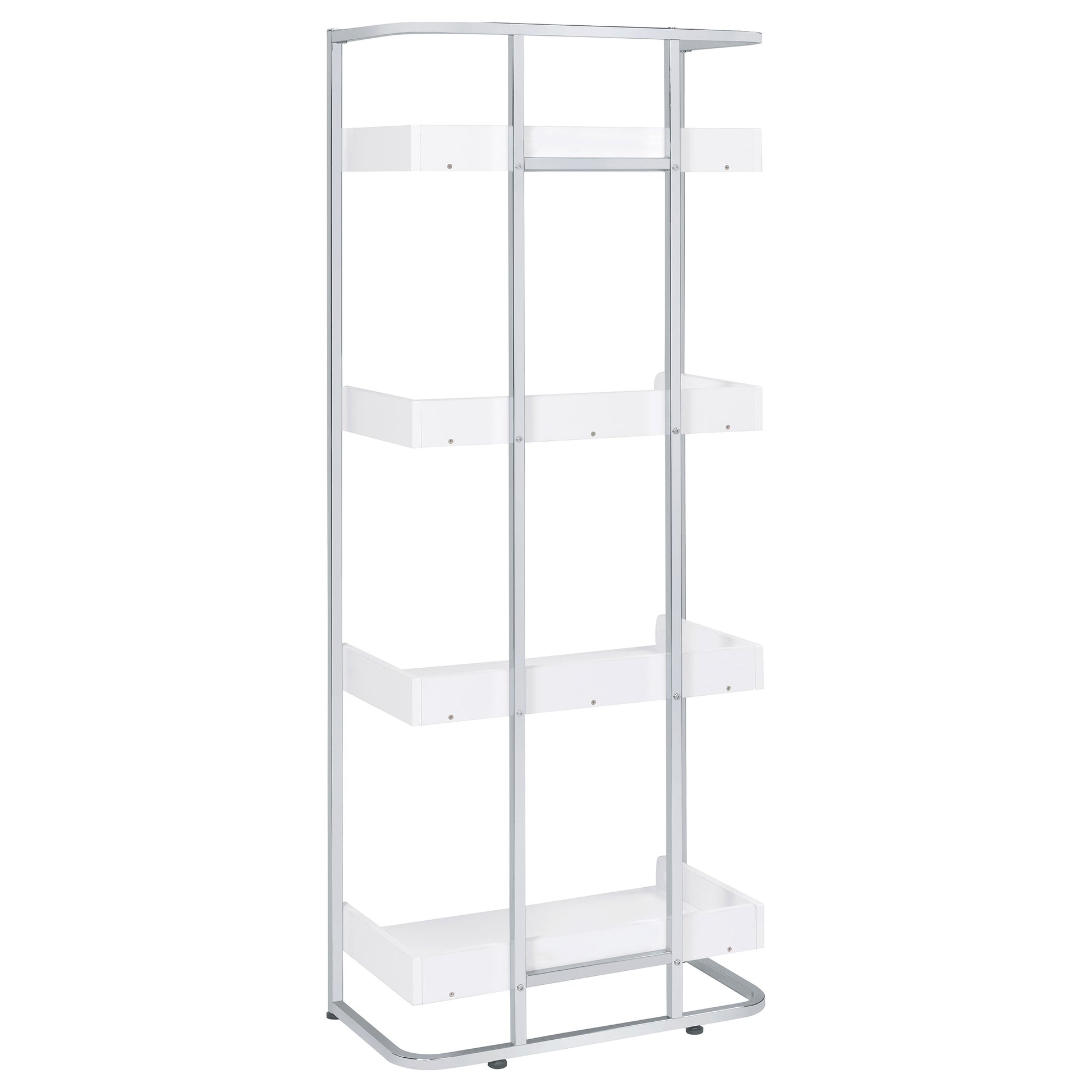 Ember 68-inch 4-shelf Bookshelf White High Gloss and Chrome