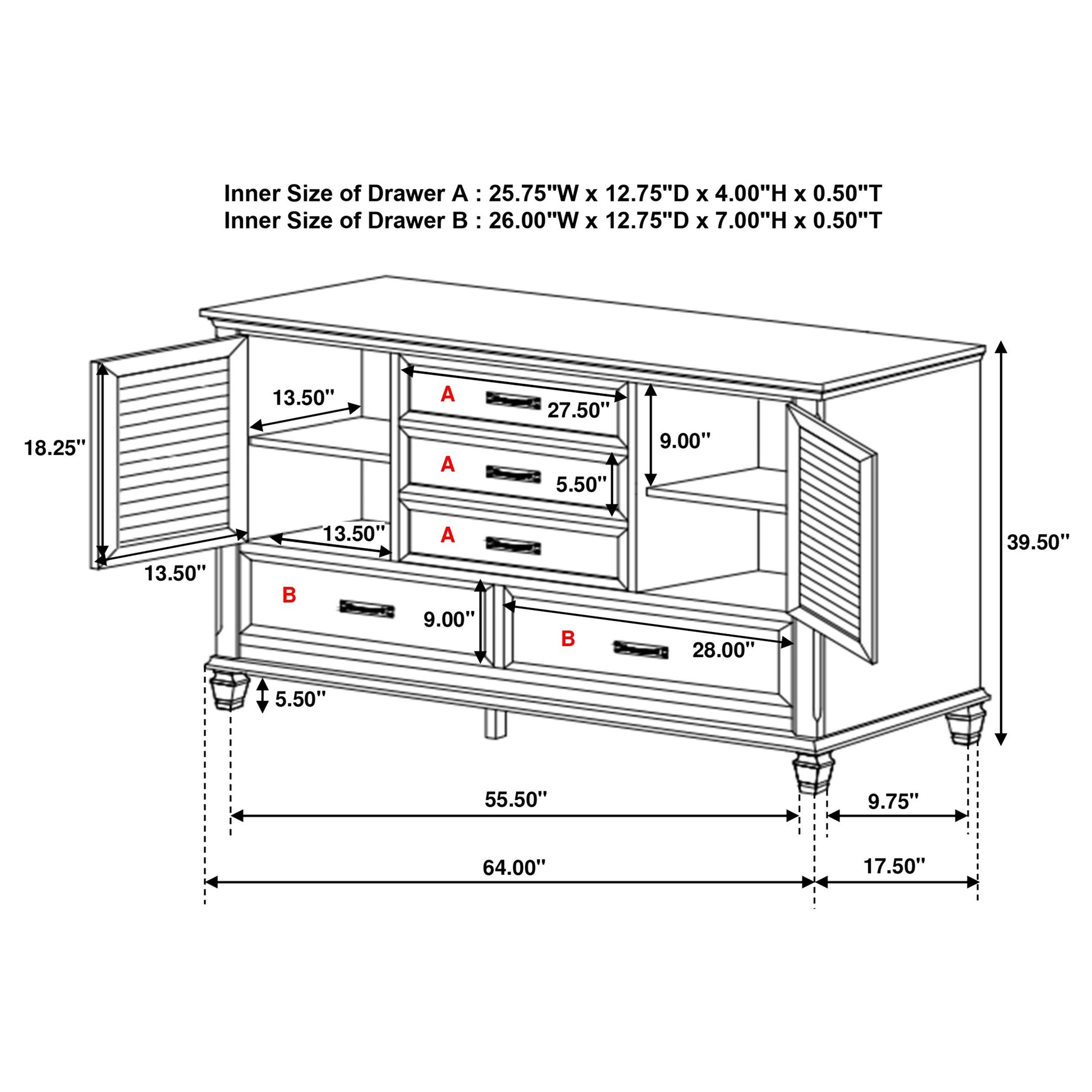 For stylish practicality and convenience, this superb 4-piece bedroom set from the Franco collection has what it takes. The impressive bed has an imposing headboard and low footboard with exquisitely detailed panels and design. The drawers on the nightstand and dresser operate with soft-closing guides that offer convenience and durability. The nightstand also includes a pull-out service tray with convenient cord access to keep all your gadgets fully charged. A rectangular mirror rounds out the set, which is warmly finished that's sure to match any bedroom decor.