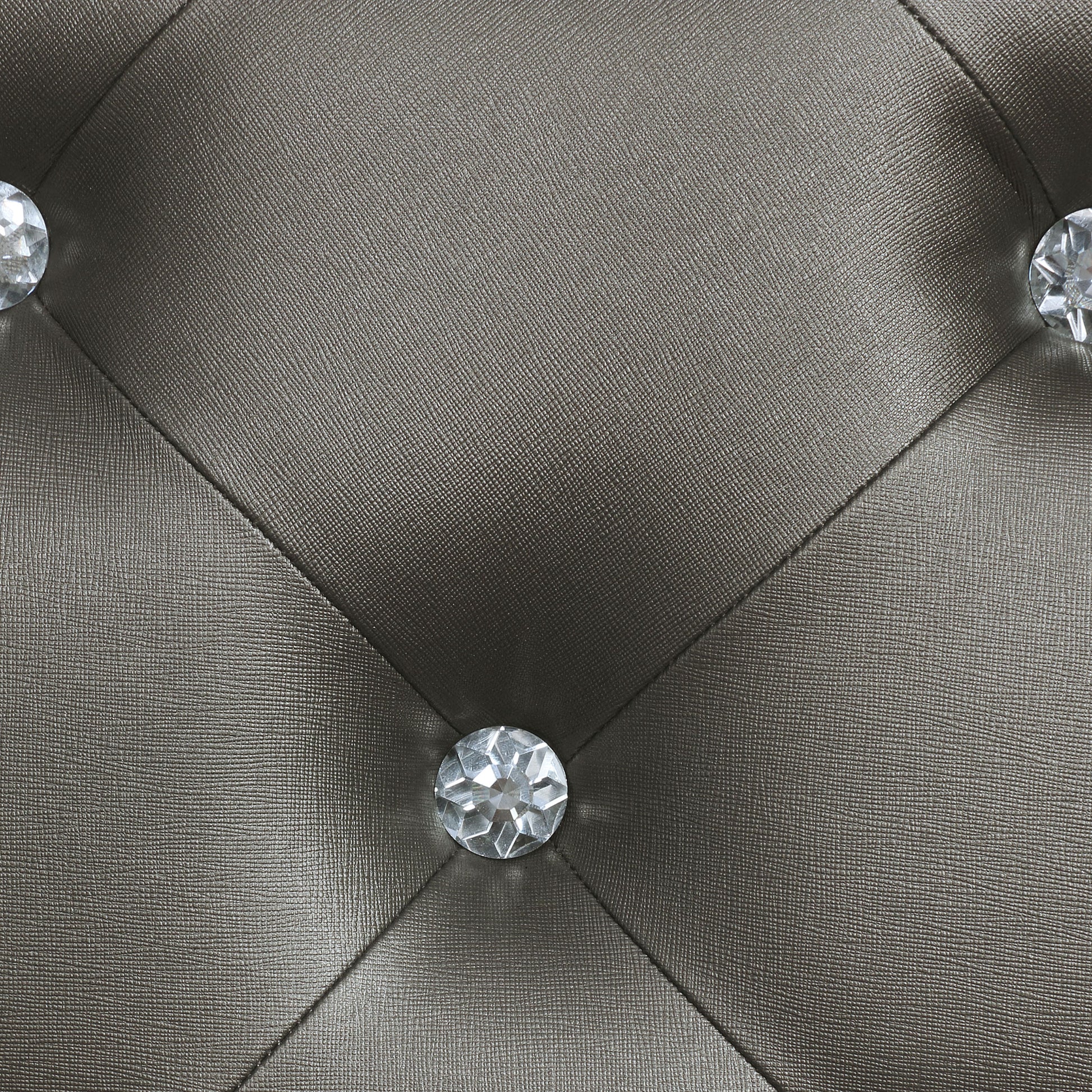• Headboard features crystal-tufted metallic leatherette panel for a glam effect