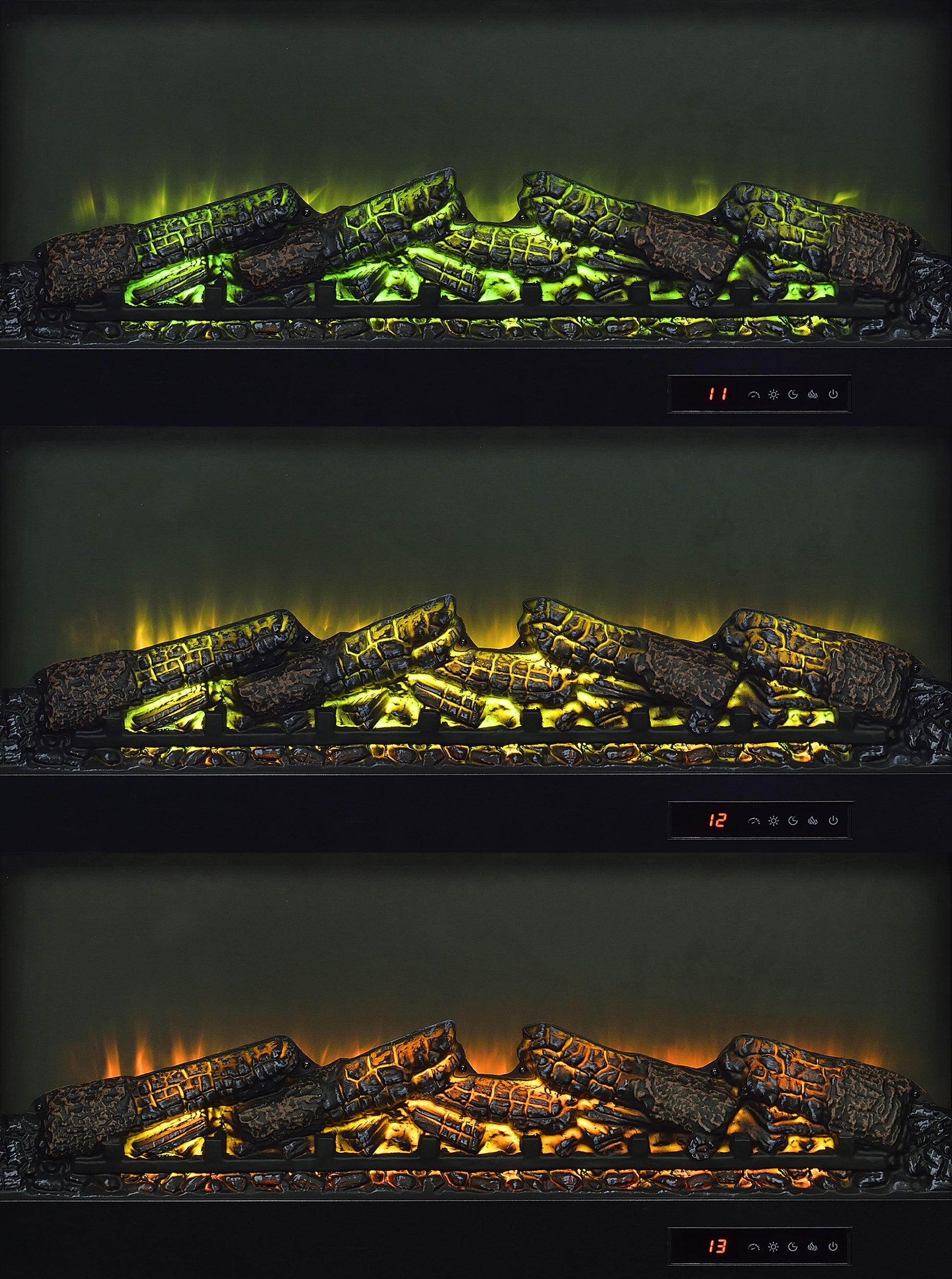 • Realistic burning ember display without heat functionality delivers visual warmth and ambiance