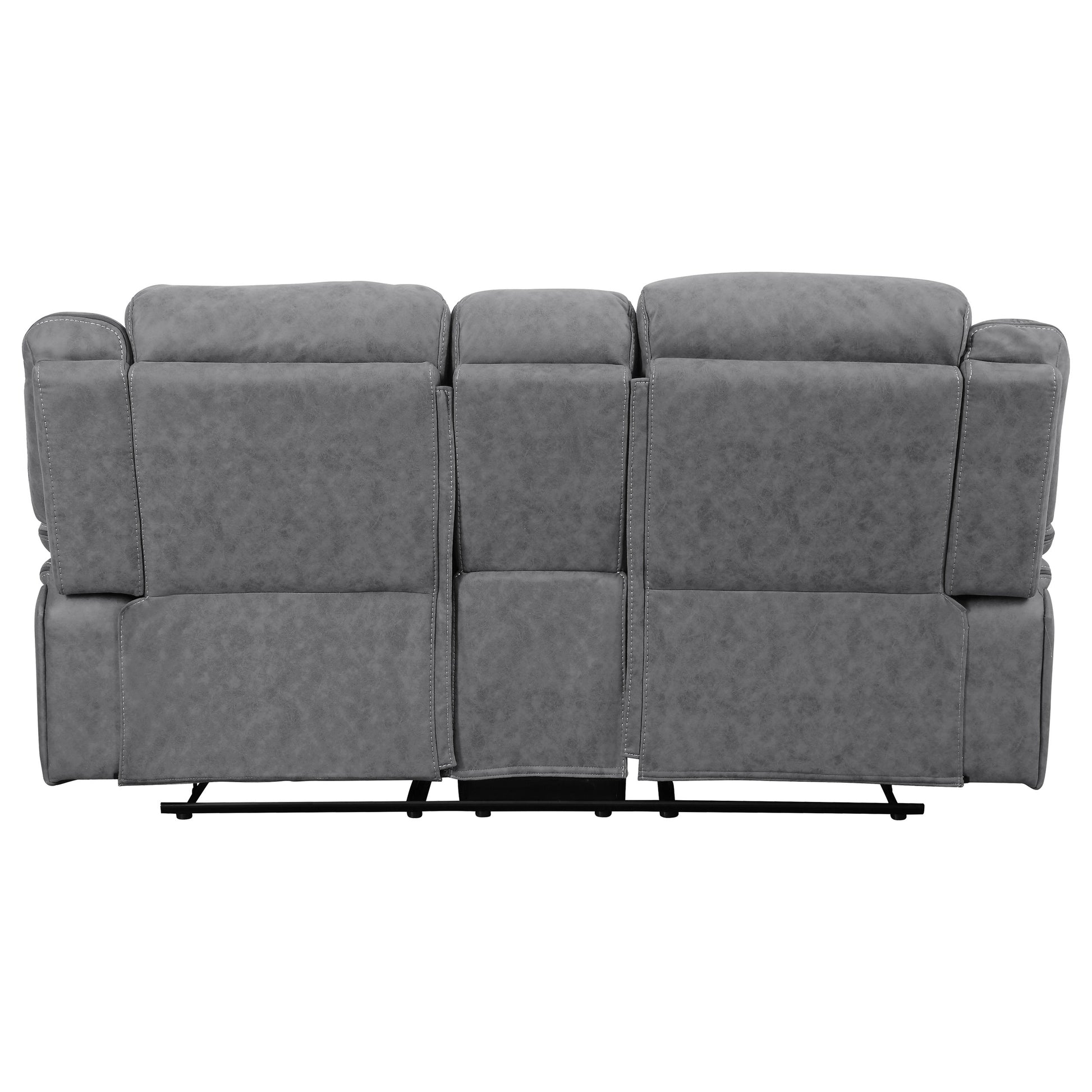 • Loveseat console features lift top storage with two removable stainless steel cup holders