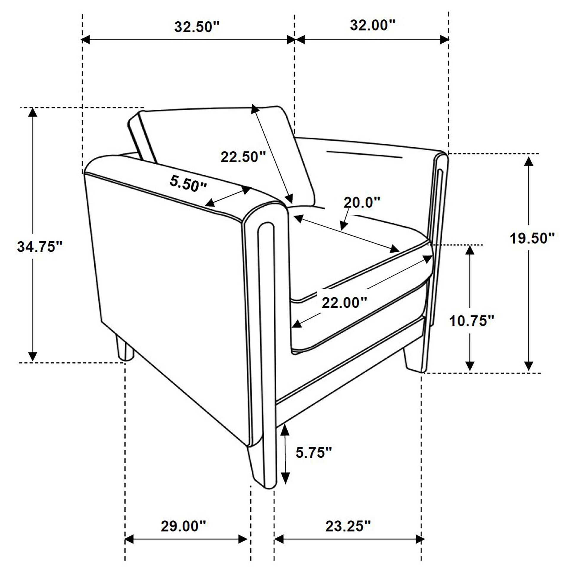 • Accent chair with panel arms and coffee frame delivers a structured, contemporary look