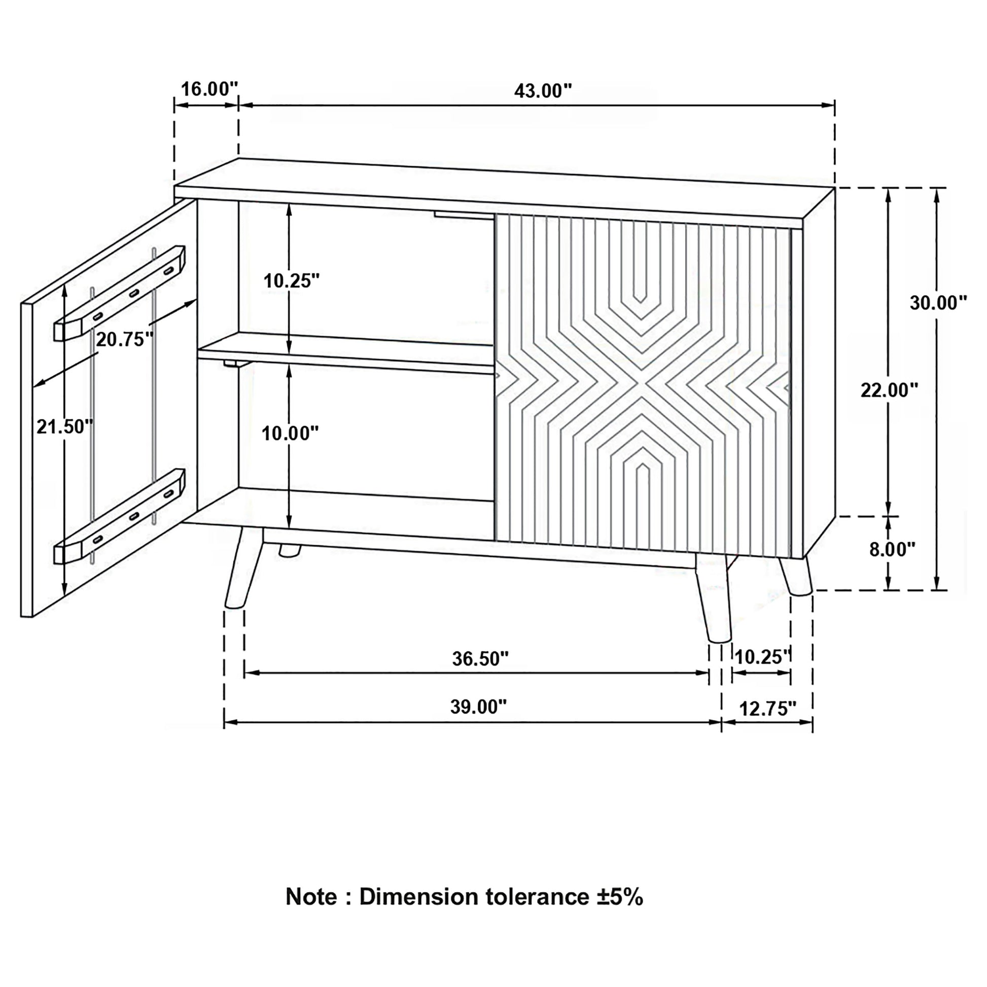 • Two spacious cabinet doors offer concealed storage for organization