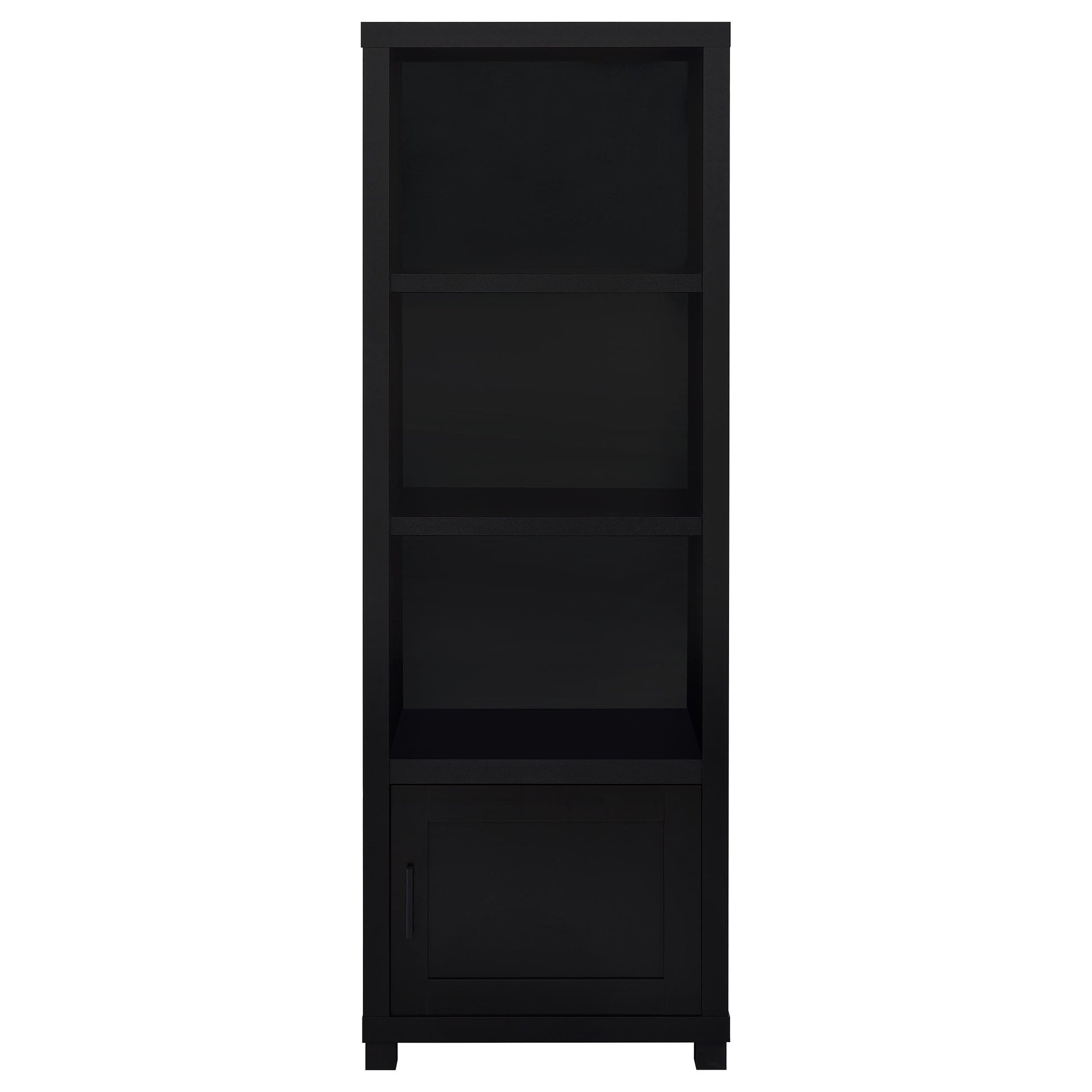 • Media towers feature three open shelves and a single-door cabinet for versatile storage