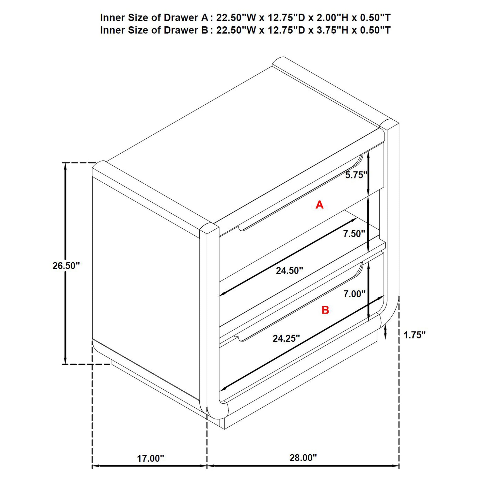 Leandro 2-drawer LED Nightstand with USB Burnished BlackRegular price $738.00Regular priceUnit price / per$861.00Sale price $738.00Sale