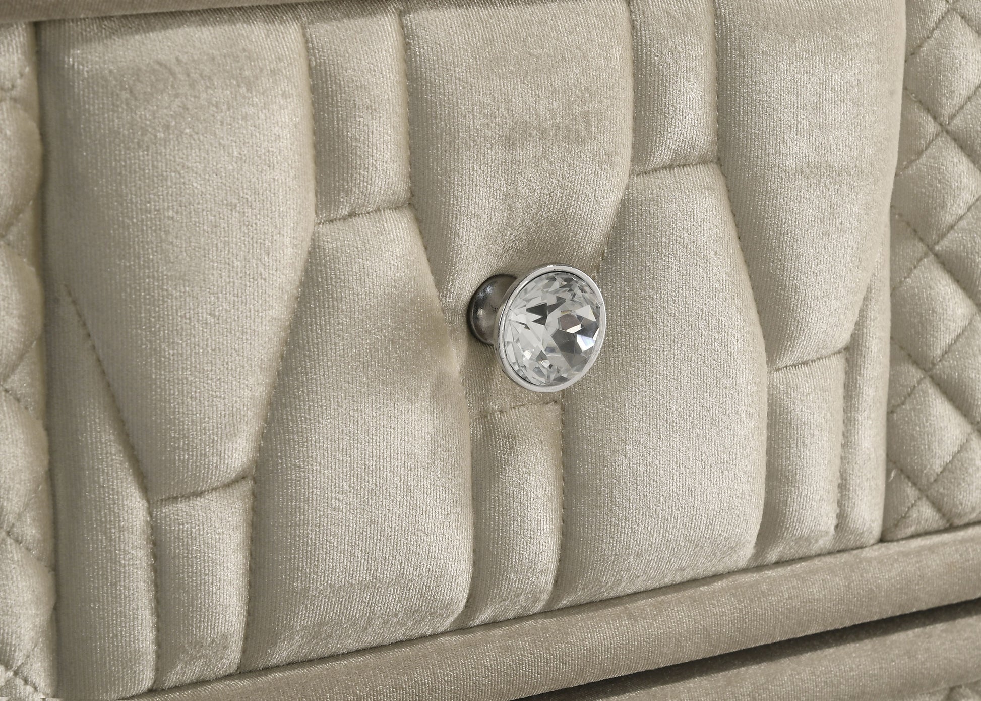 • Crystal knobs, quilted fronts, and acrylic accents for radiant visual texture
