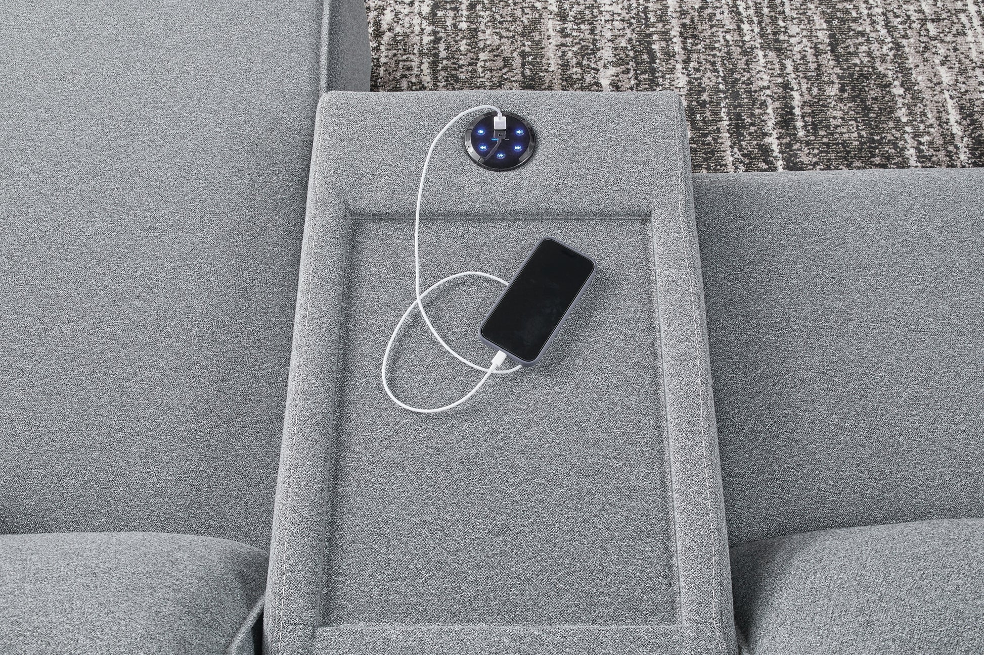 Looking cool and contemporary is great. But when it comes down to it, you’re all about low-maintenance lounging. With the performance fabric on this power reclining sectional, cleaning spills is a breeze. Its modular design caters to your ever-changing needs. And the console's plexiglass top is the perfect beverage perch during family movie night or when guests drop by. It's proof that modern design and superb comfort go hand in hand.