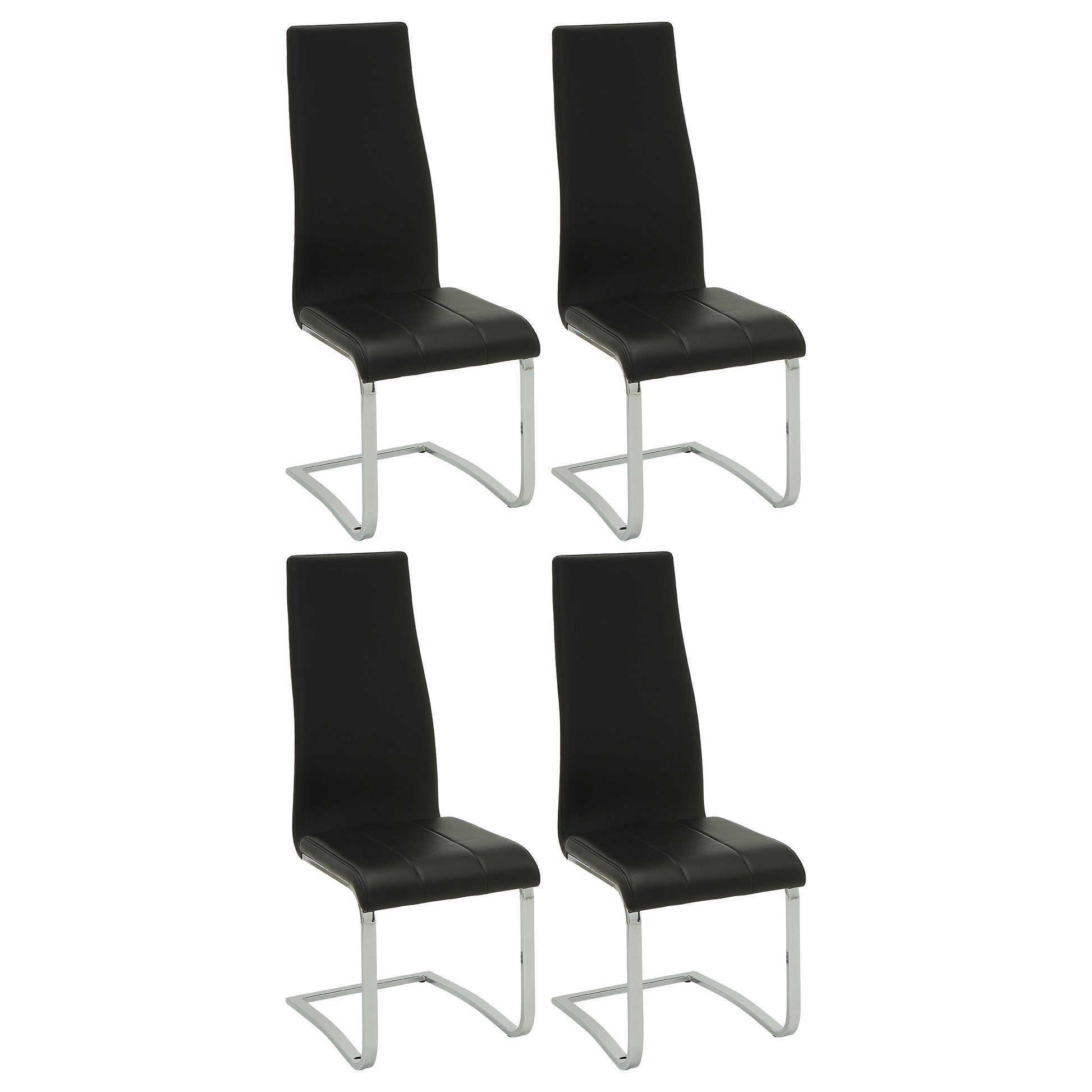 Bring sleek sophistication to your dining area with this high-back side chair in rich black leatherette. The iconic Breuer-inspired silhouette is paired with a cantilever chrome base for a clean, modern look. Designed for comfort, the ergonomic backrest offers excellent support, while the armless frame provides an open, contemporary feel. A perfect fit for minimalist, modern, or industrial-style dining spaces.