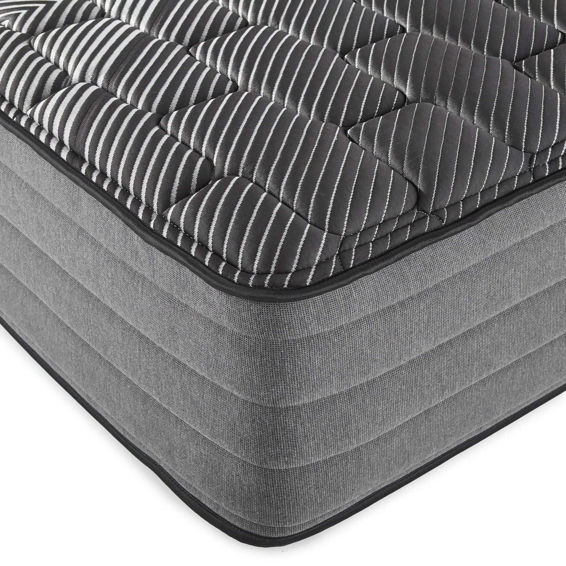 Surrender to the embrace of this premium mattress, a sanctuary of rest where cutting-edge technology meets time-honored craftsmanship, proudly made in the USA. Draped in an icy black cover, this mattress invites a cooler slumber, its breathable fabric expertly designed to wick away moisture. Beneath, the visco foam, enriched with copper, gel, silver, and graphite, contours to your form, offering an unrivaled pressure relief that whispers of dream-filled nights. This foam is Certi-Pur-US certified, ensuring it meets rigorous standards for emissions, content, performance, and durability. The robust high-density firm comfort foam supports not just the spine, but every dawn's ambitions, while the perimeter edge wrapped coils promise a tranquil sea for sleep, undisturbed by the movements of your companion.
