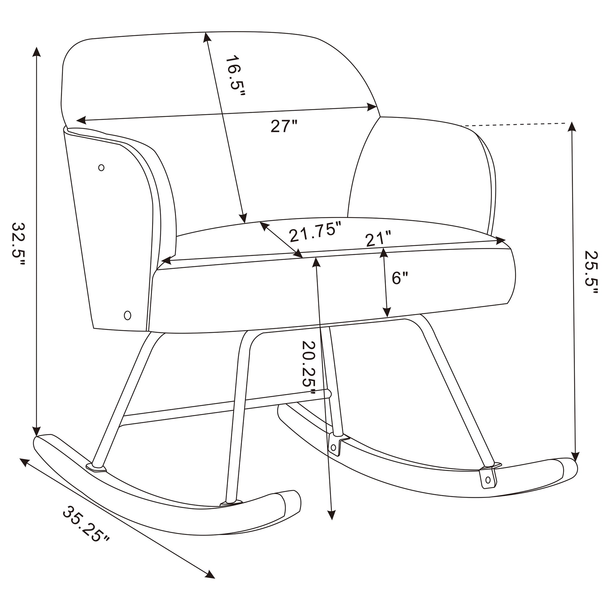 • Sturdy metal legs and wooden rockers ensure smooth, stable motion