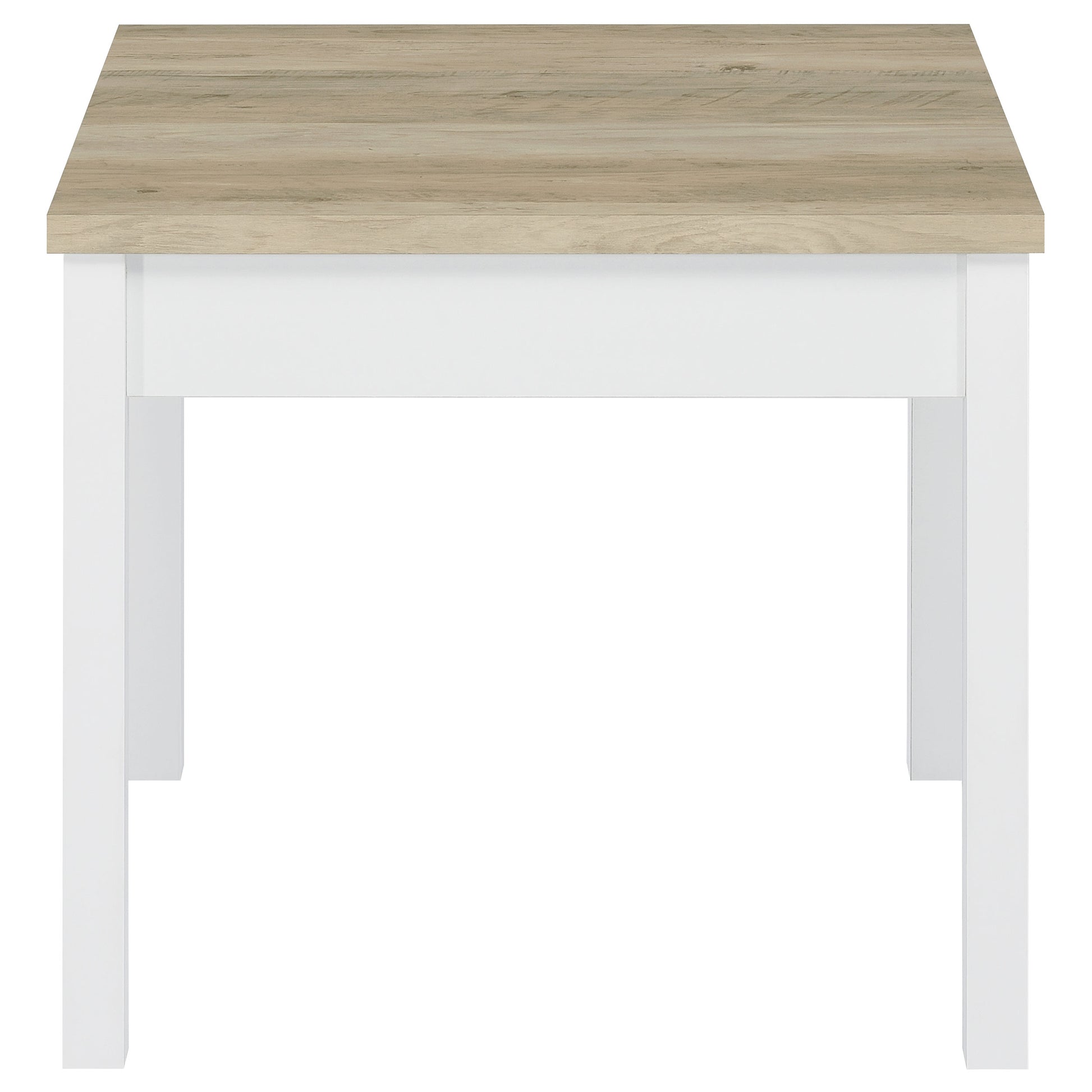 An updated version of farmhouse style is soft and easy on the eyes as this three-piece wood coffee table set is a viable option for your family room or living room. Casual and yet nicely designed, this set offers a versatile finish palette of distressed pine and white over wood products. Clean lines add an easy optical effect. Make your space a simple yet stylish venue with tables designed to last through redesigns. Set includes one rectangular coffee table and two end tables.