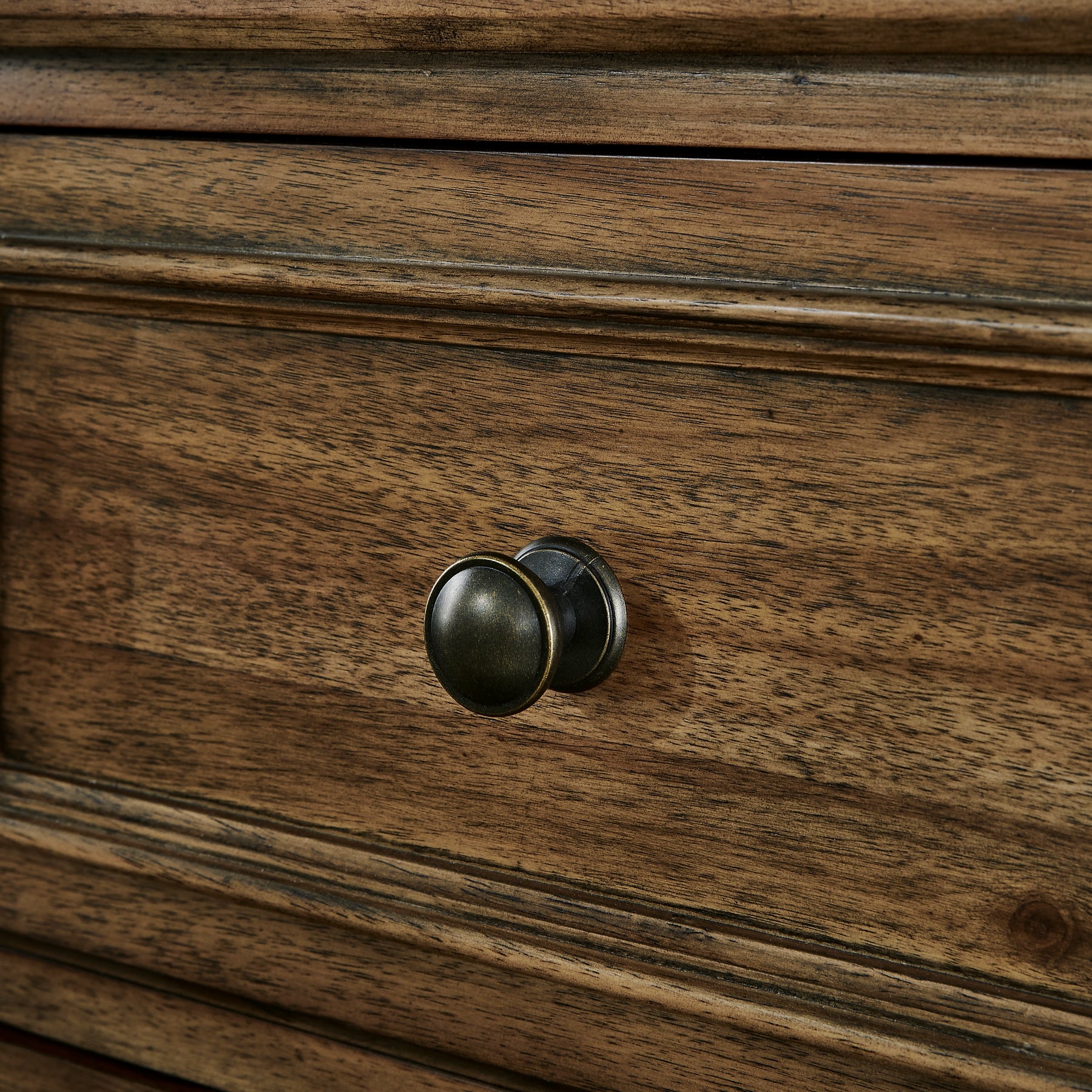 | Details | Made with hardwood solids, veneers and MDF substrates, Brown finish, Oil-rubbed bronze-tone hardware, 2 drawers with fully finished interior, felt bottom, dovetail construction and ball-bearing side glides, 2 glass door cabinets, each with an adjustable shelf, Open lower shelf, Assembly required | |