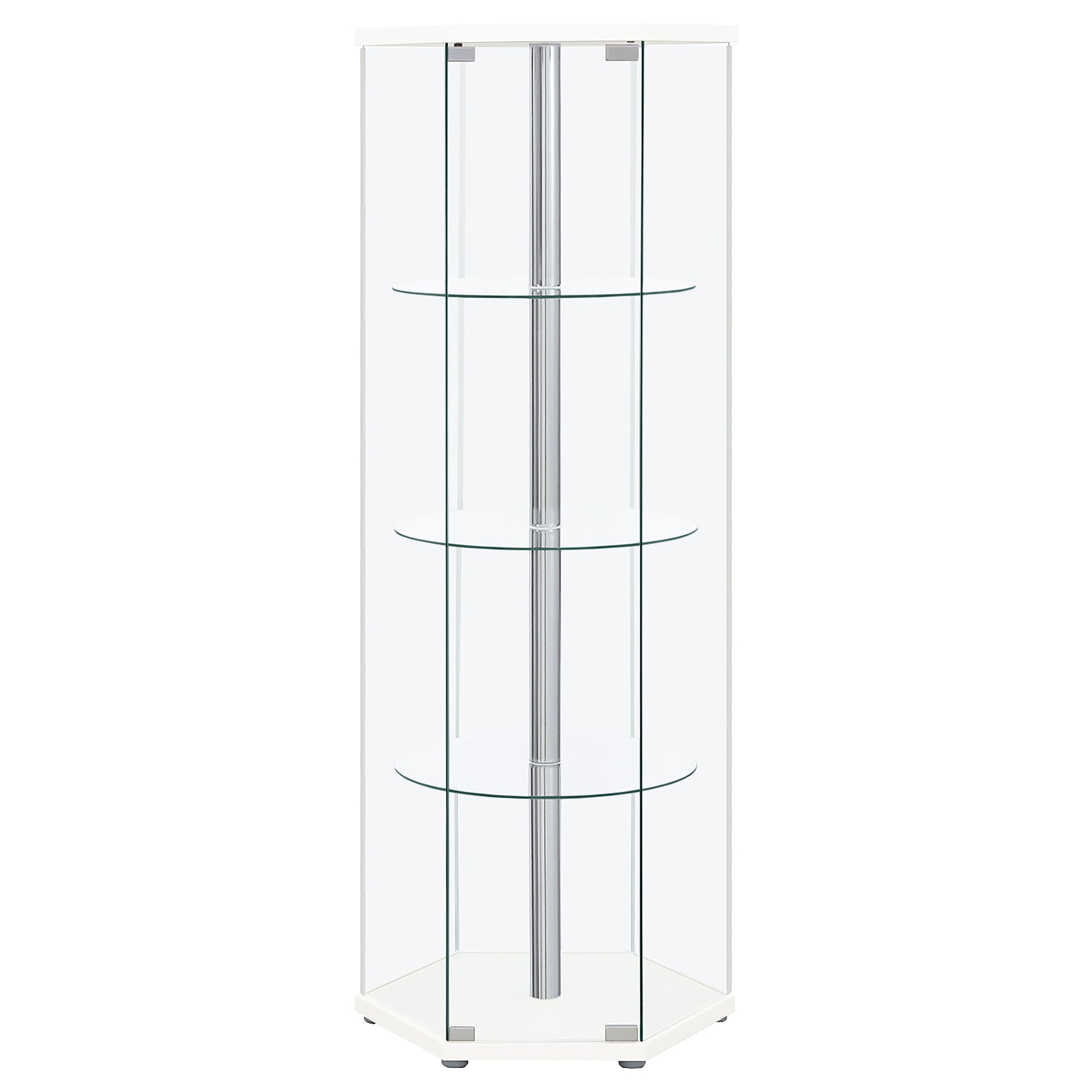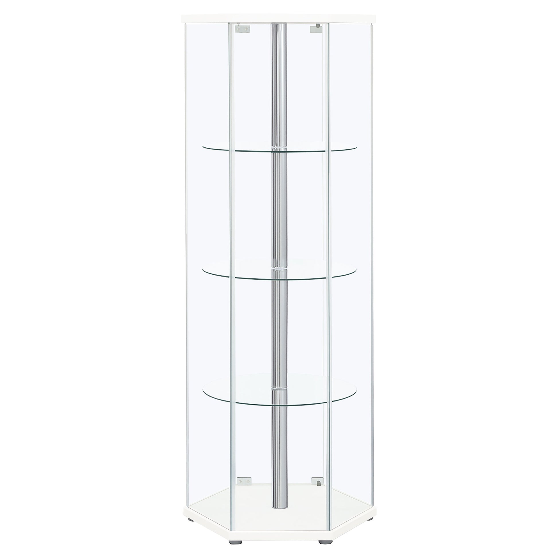 Zahavah 4-shelf Hexagonal Clear Glass Curio Cabinet White