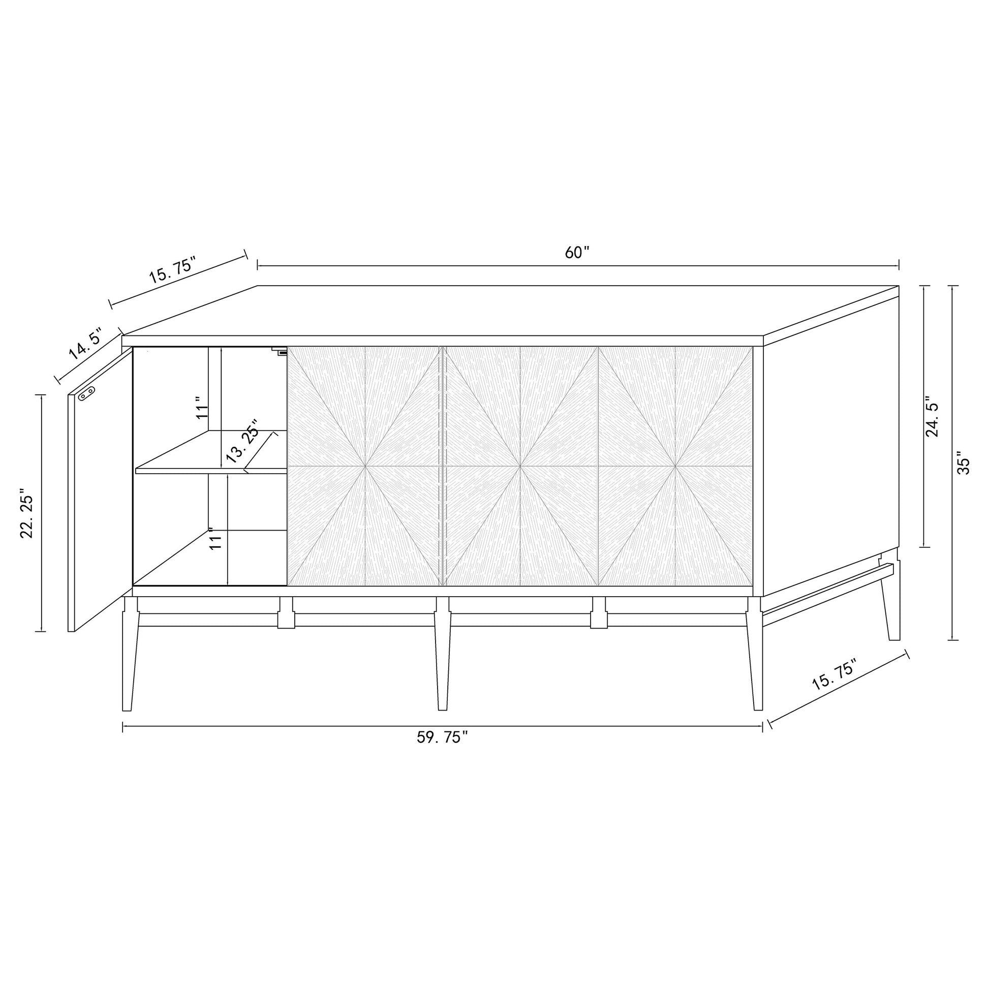 • Four-door accent cabinet with hand-crafted sunburst texture across each panel
