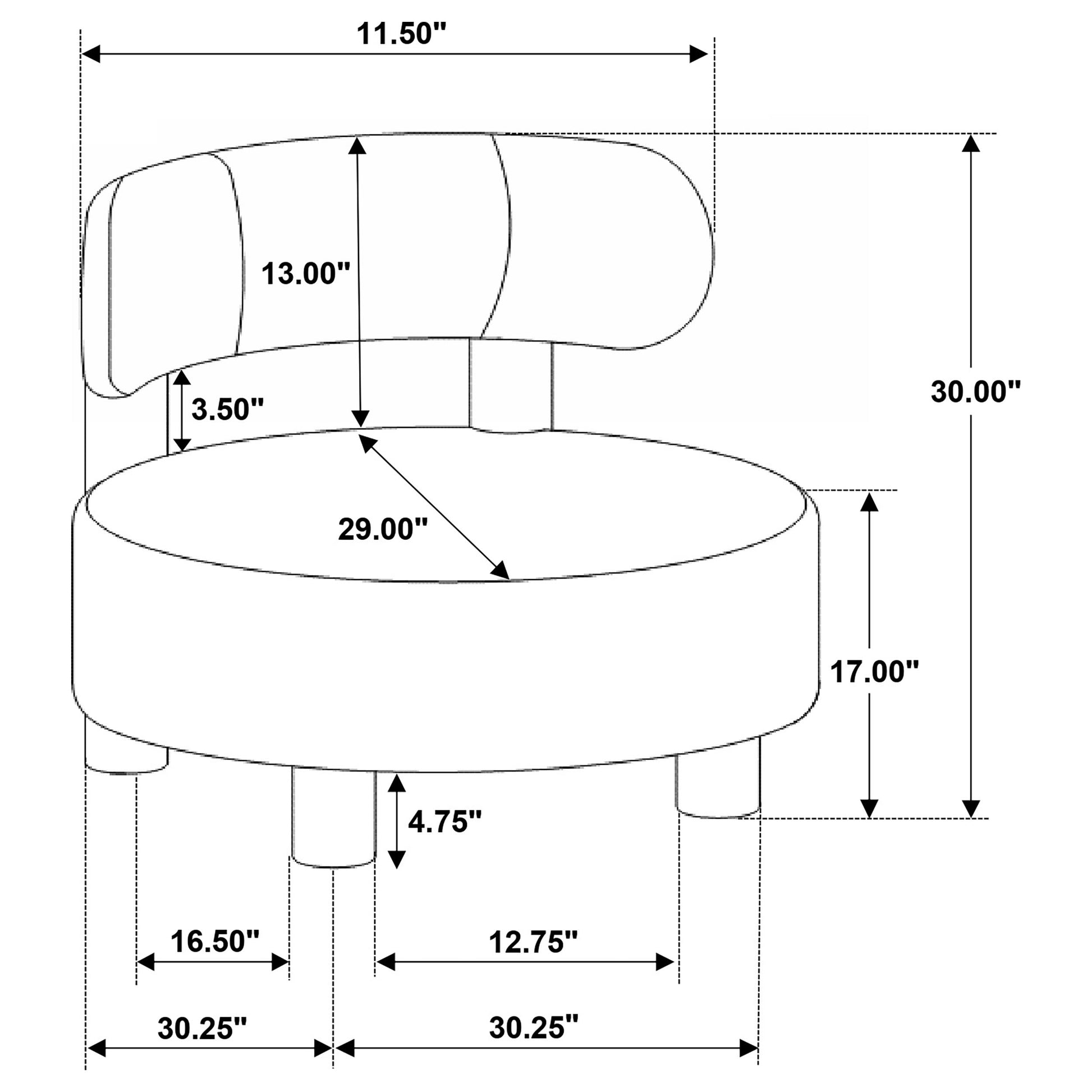 • Round seat and slim barrel backrest create a compelling silhouette in any room